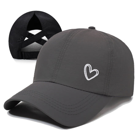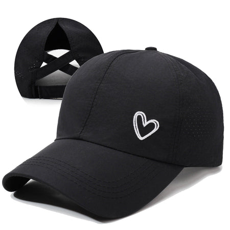 The embroidery detail with "Love" adds a sweet, personal touch, while the cross-tie design perfectly accommodates high ponytails, making it ideal for sporty or casual looks. Whether you're at the beach, park, or running errands, this cap combines functionality and fashion effortlessly. 🏖️✨
