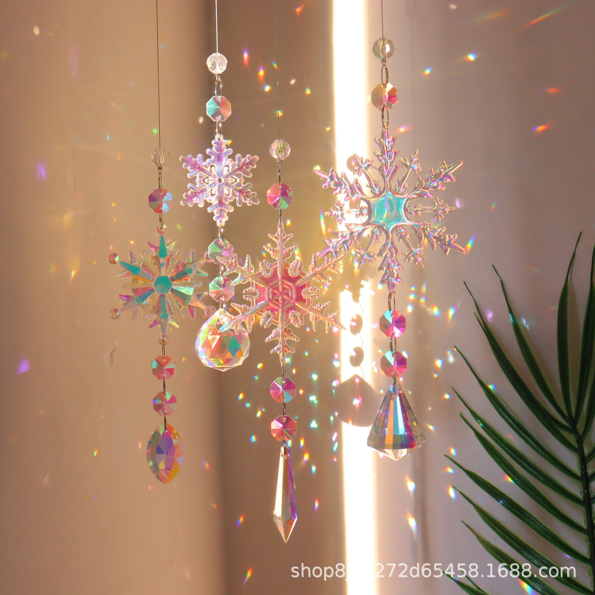 βοΈ Crystal snowflake center with rainbow suncatcher beads