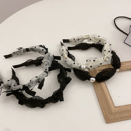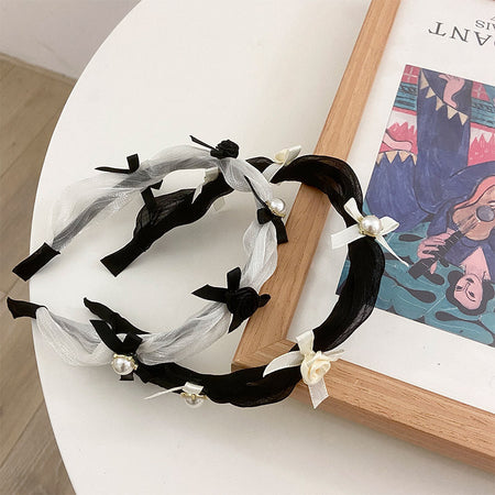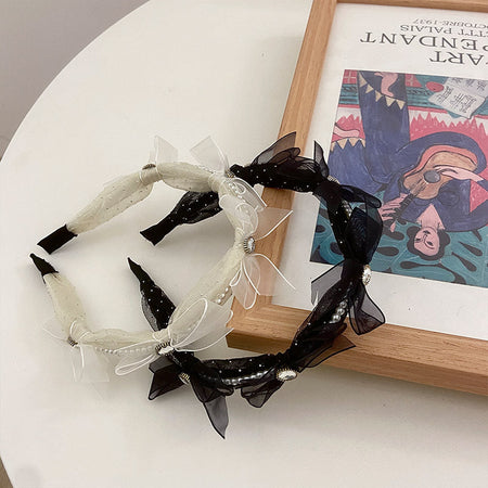 (Pack of 2) Fairy Mesh Bow Hairband β Pearl French Style Headband