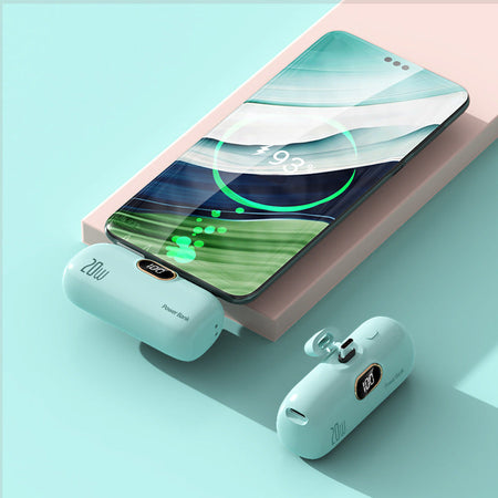 Pocket-sized and stylish, this Capsule Power Bank packs 22.5W fast charging in a cute, compact design. Perfect for those who want quick energy on-the-go.