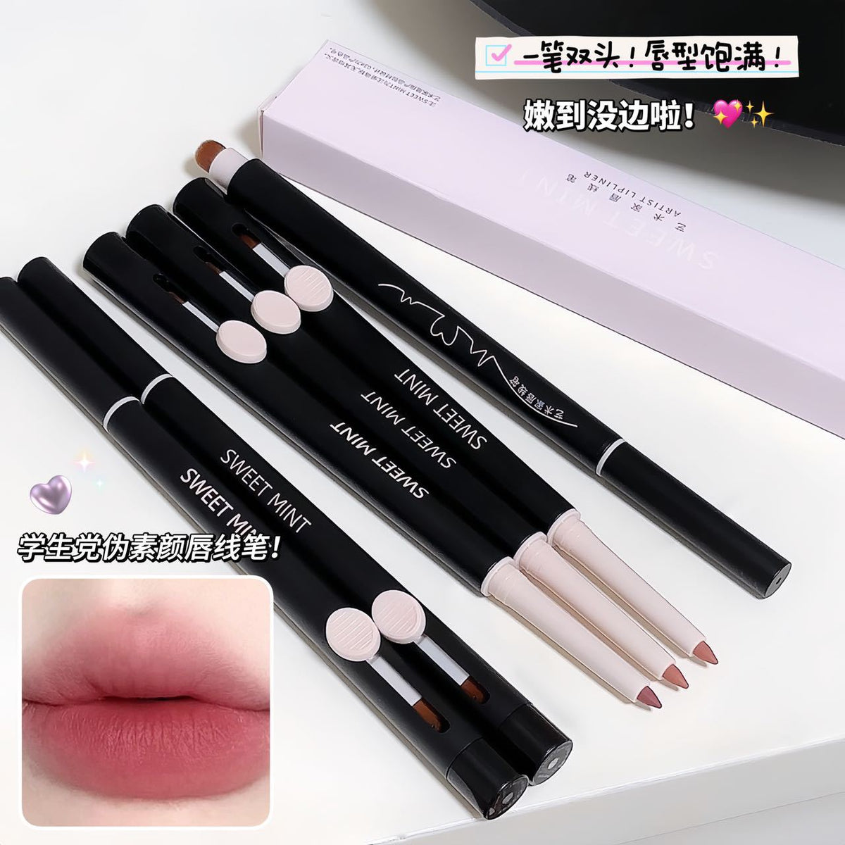 Perfect your pout with the π¨ SWEET MINT Artist Lip Liner! This 2-in-1 pencil features a precise liner tip and a built-in lip brush for smooth blending. With natural nude tones and a fade-resistant formula, it shapes your lips beautifully and lasts all day π.