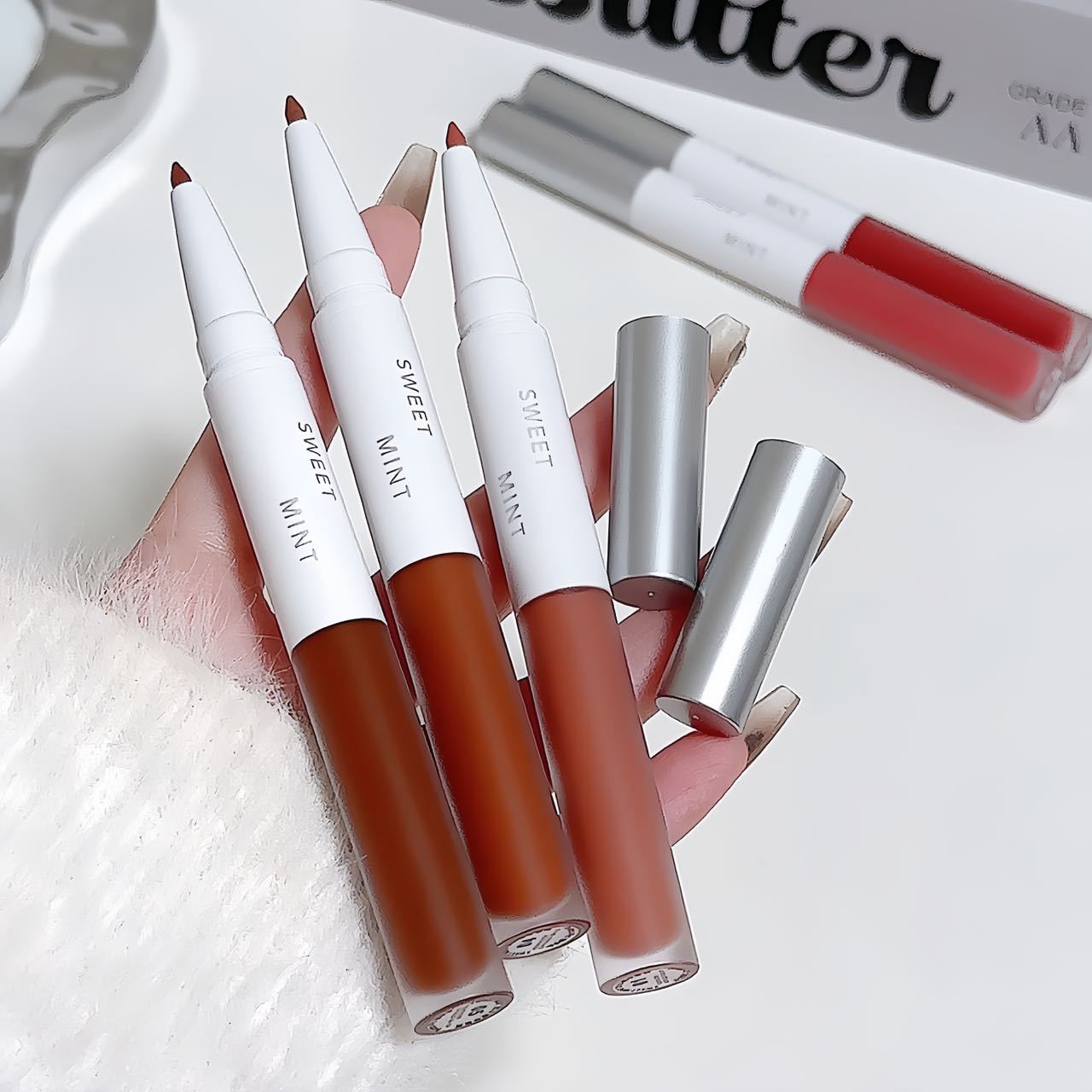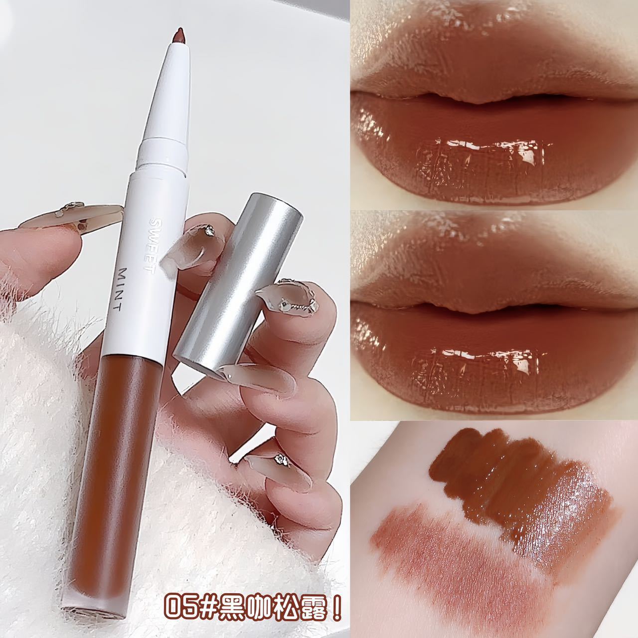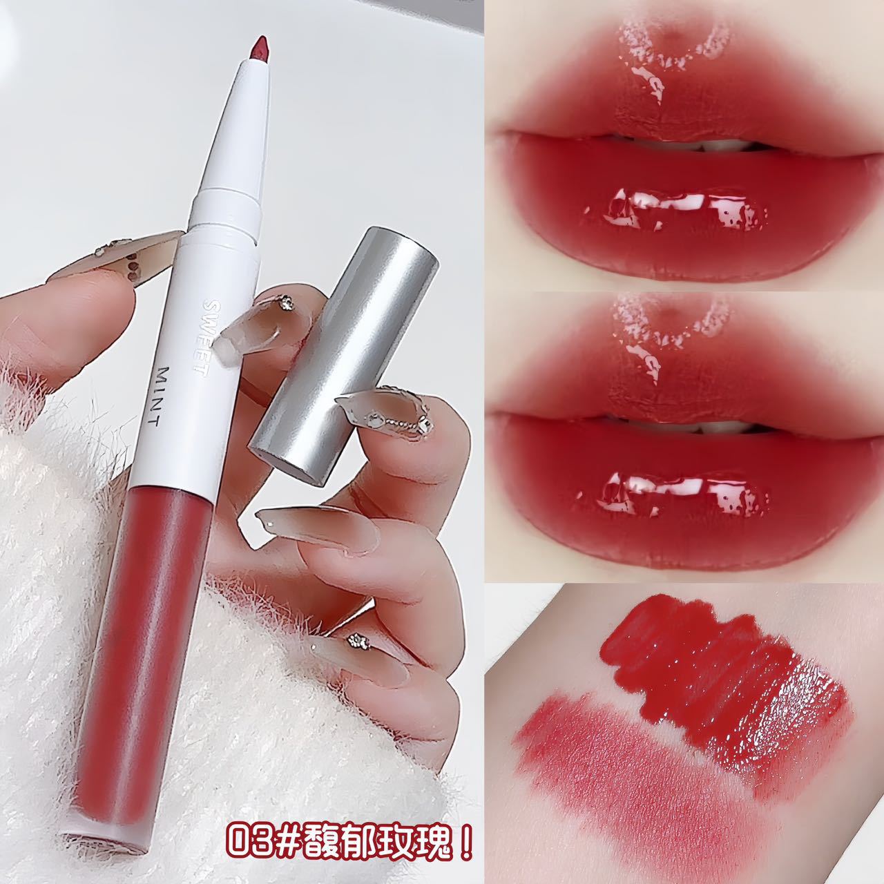 Unlock radiant lips with the SWEETMINT Double-Headed Essence Lip Glaze, your all-in-one solution for definition and dazzling shine. Featuring a lip liner on one end and a mirror-like water light glaze on the other, this dual-ended beauty essential creates plump, juicy lips that stay vibrant all day.