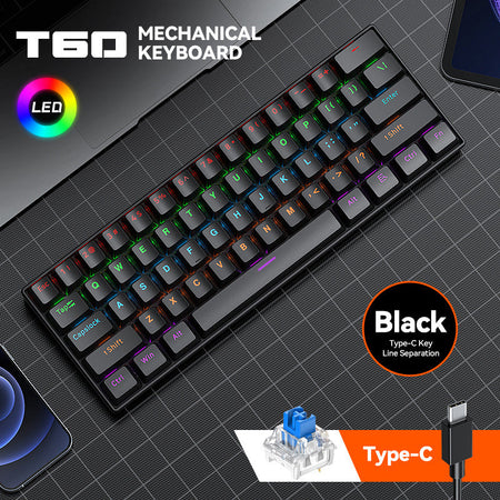 T-WOLF Thunder Wolf T60 Mechanical Keyboard Double Color Portable