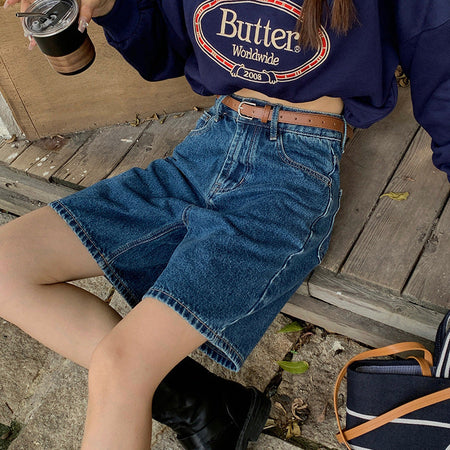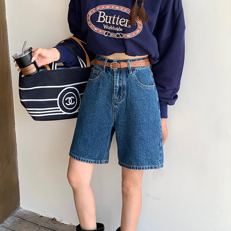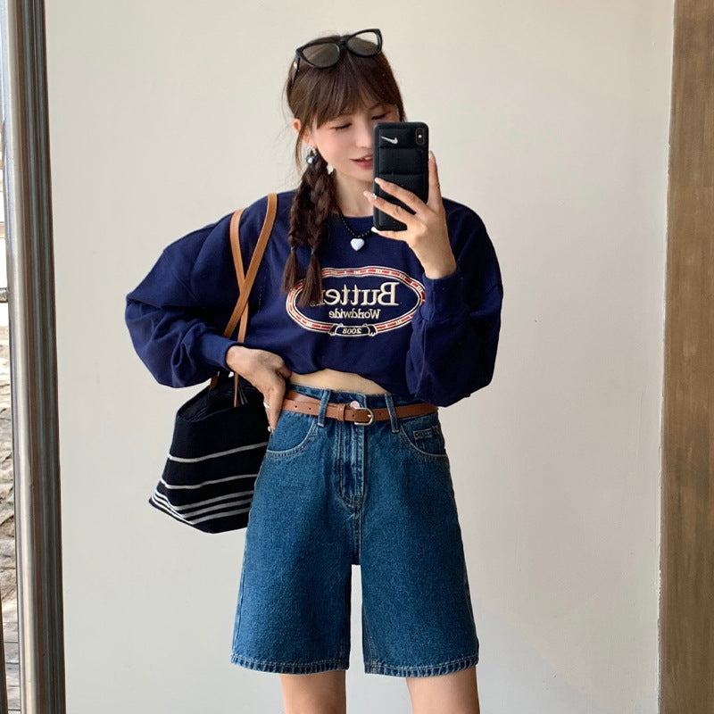 π Fresh tannin blue with stylish embroidery! These loose, high-waist denim shorts blend comfort with standout details.