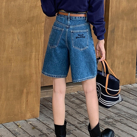 Tannin Blue Denim Shorts β Trendy Embroidered High Waist