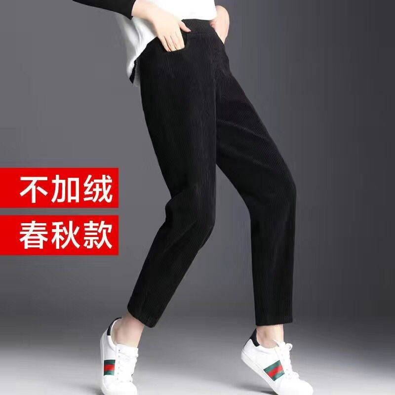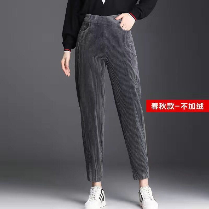 Crafted with soft fleece lining and thick corduroy fabric, they provide extra warmth and comfort, keeping you snug during chilly days. The harem-style loose fit with cropped radish pants design ensures freedom of movement while adding a modern, relaxed silhouette. Ideal for pairing with oversized sweaters, hoodies, or casual tops, these pants combine fashion, comfort, and versatility. 🌸