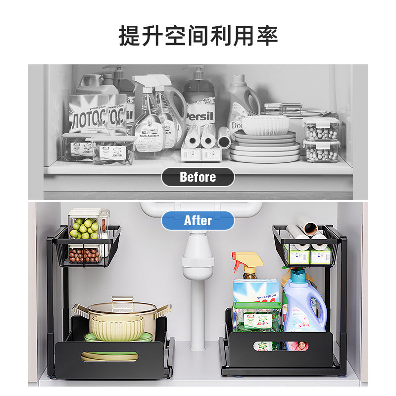 Thickened Double-Layer Pull-Out Kitchen Storage Rack