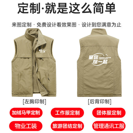 Keep cozy and stylish this winter with our thickened fleece-lined vest, perfect for workwear, outdoor activities, or casual layering. The polar fleece material provides superior warmth, while customizable logo printing makes it ideal for corporate branding or team uniforms.