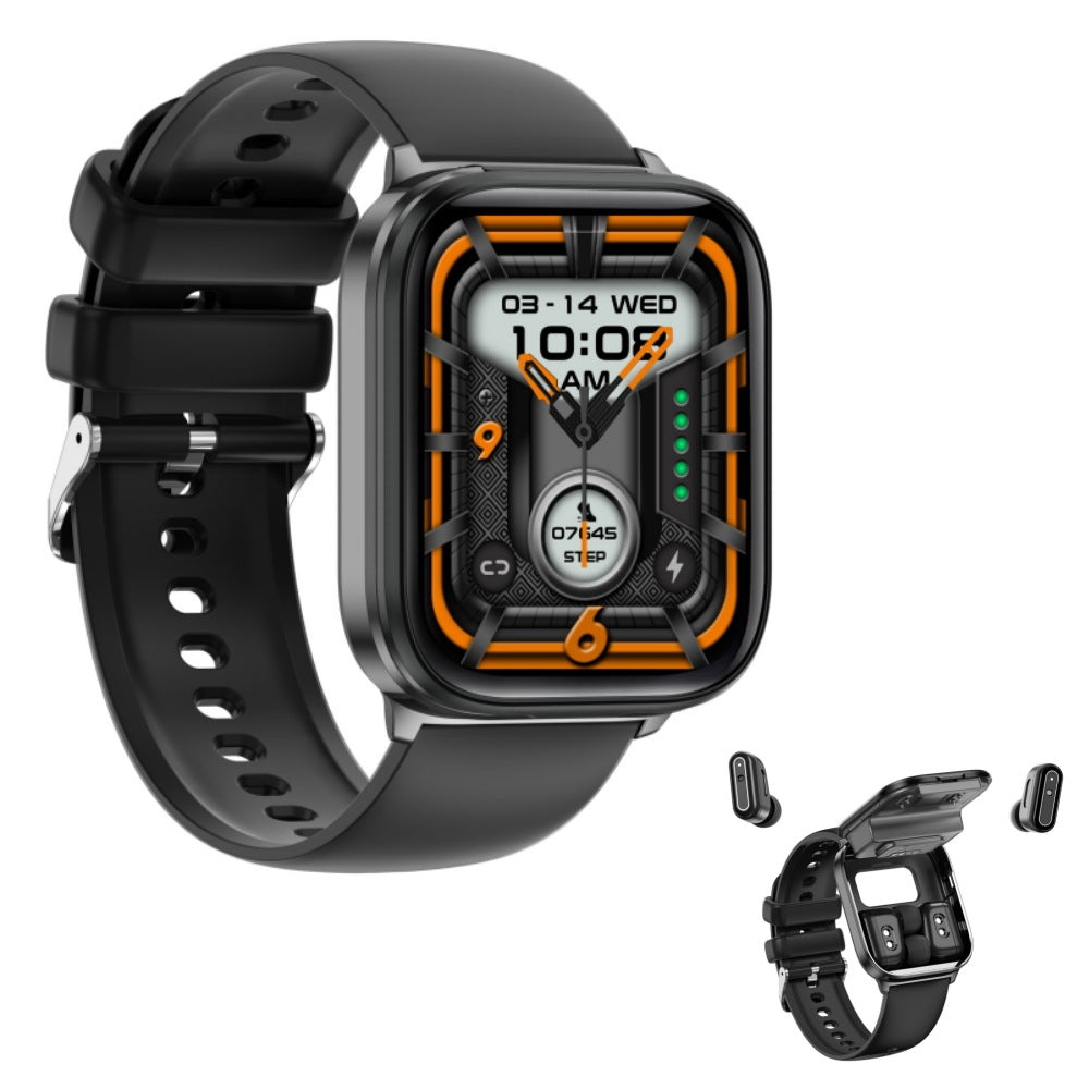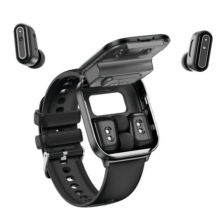 This thin & lightweight smartwatch not only tracks your fitness and manages calls but also includes detachable Bluetooth earbuds hidden inside a stylish flip cover. Perfect for office meetings, gym sessions, or travel, it ensures you’re always connected – without extra bulk.