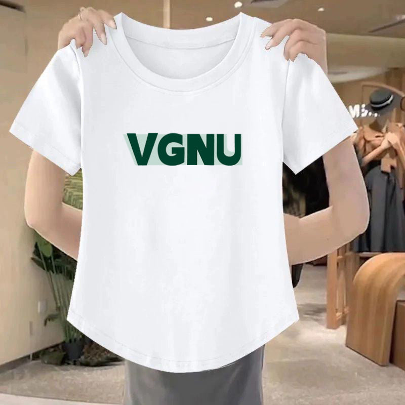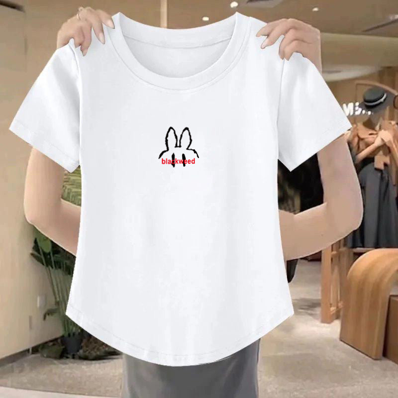 Slim Fit Threaded Cotton T-shirt β Arc Hem Hot Girl Style