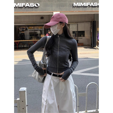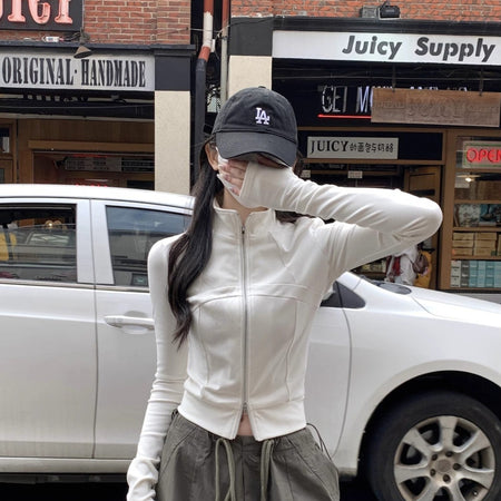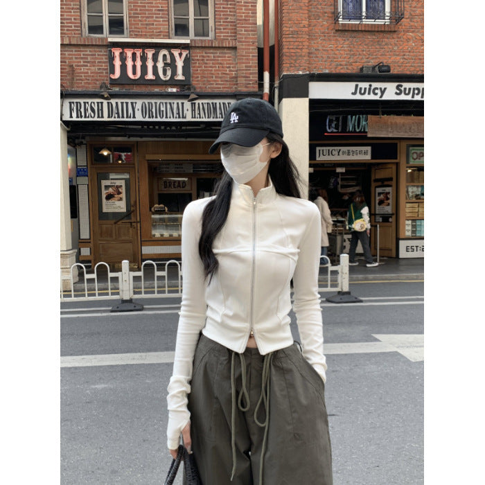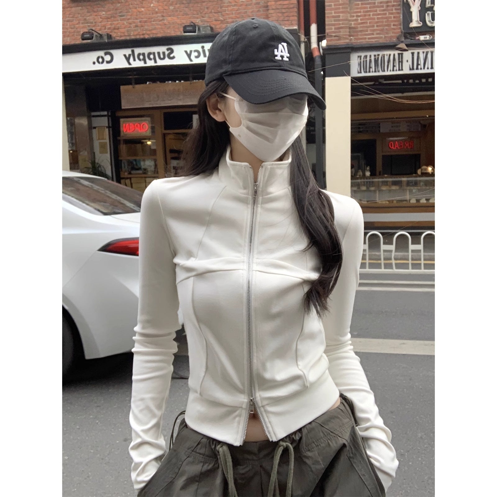 The stand collar and long sleeves provide added coverage, while the double zipper design offers versatility in styling and ease of wear. Its slim fit accentuates your silhouette, making it ideal for both workouts and casual outings.