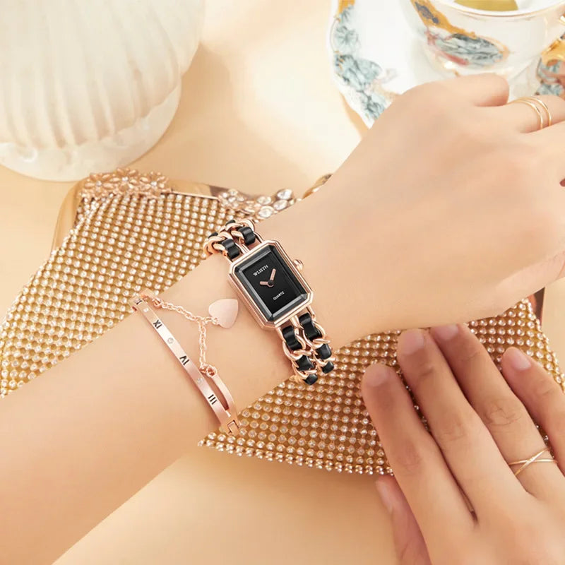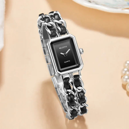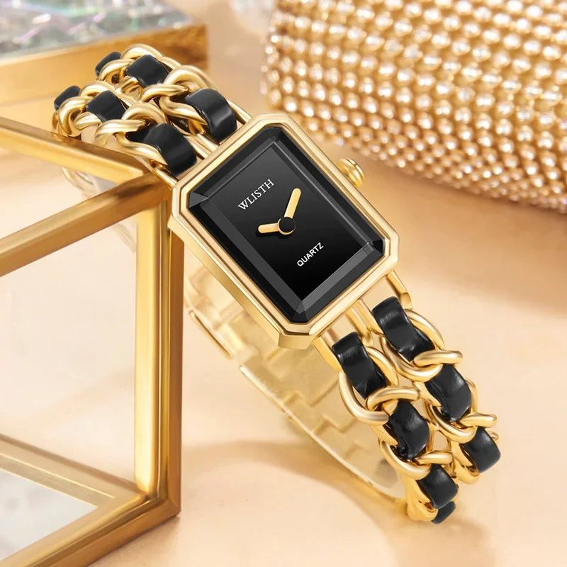 Turn heads with this TikTok and Fast Hand trending women’s watch – a Chanel-style sugar cube design featuring a chic square dial and luxe black-and-gold woven band. 🖤⌚ Perfect for fashion lovers, this elegant two-needle quartz watch blends minimalist design with bold statement styling.