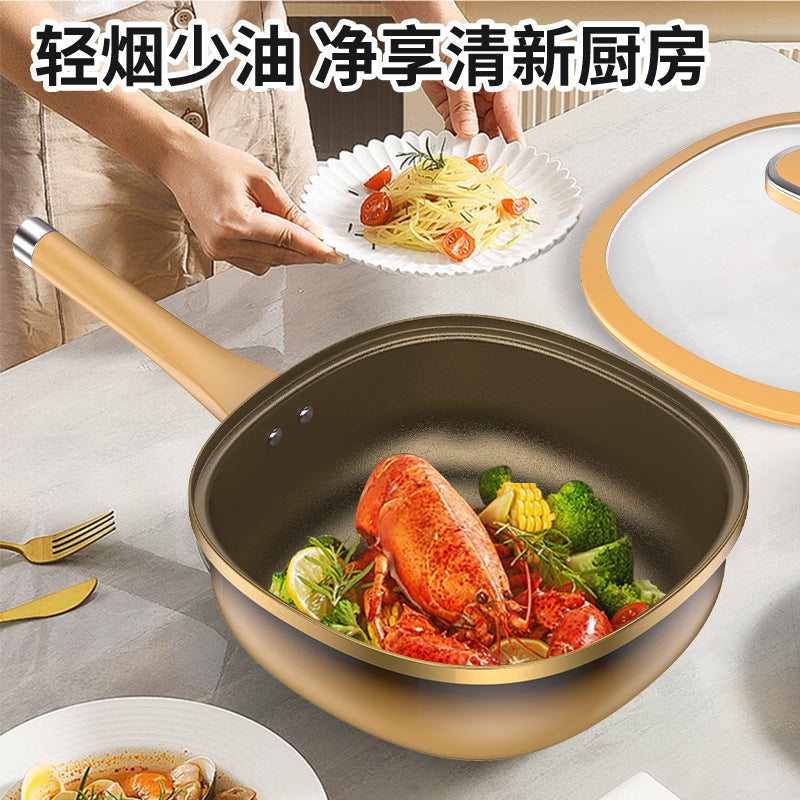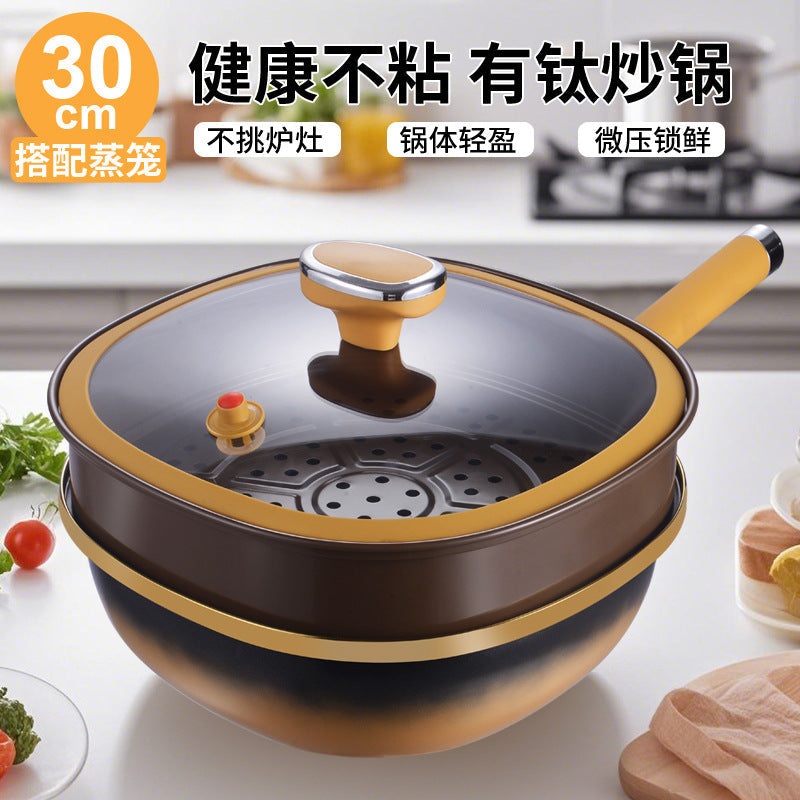 Titanium Pole Flat Bottom Wok – Non-Stick, Low Oil Fume,