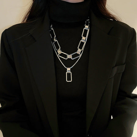 Hollow Geometric Titanium Necklace β Bold & Minimalist Chic