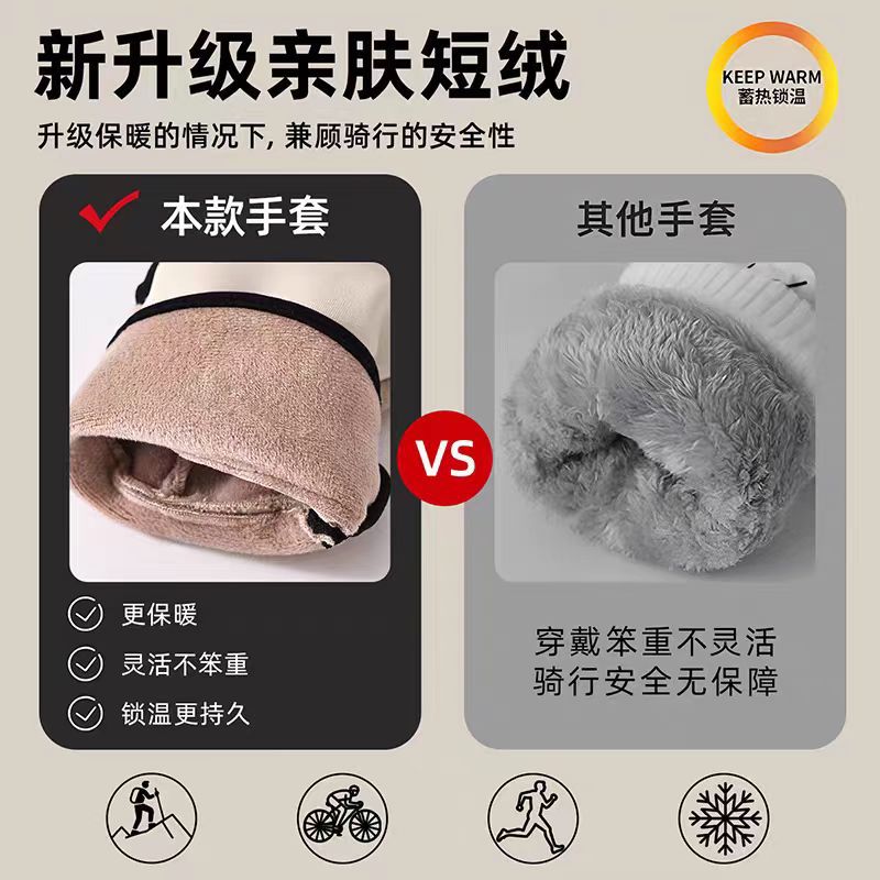 Made with a thickened velvet lining, the gloves provide excellent insulation while staying soft and skin-friendly ✨. The cold-proof and wind-resistant design helps keep your hands warm during chilly mornings and night rides 🌬️. With touch screen–compatible fingertips, you can easily answer calls or use your phone without removing the gloves 📱.