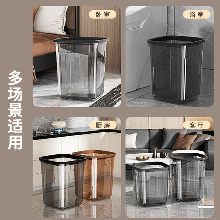 Transparent Trash Bin with Press Ring and Open Top