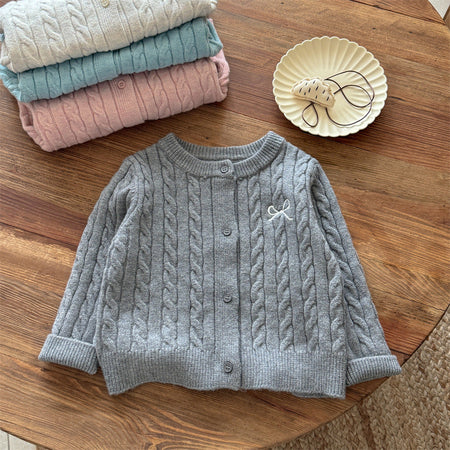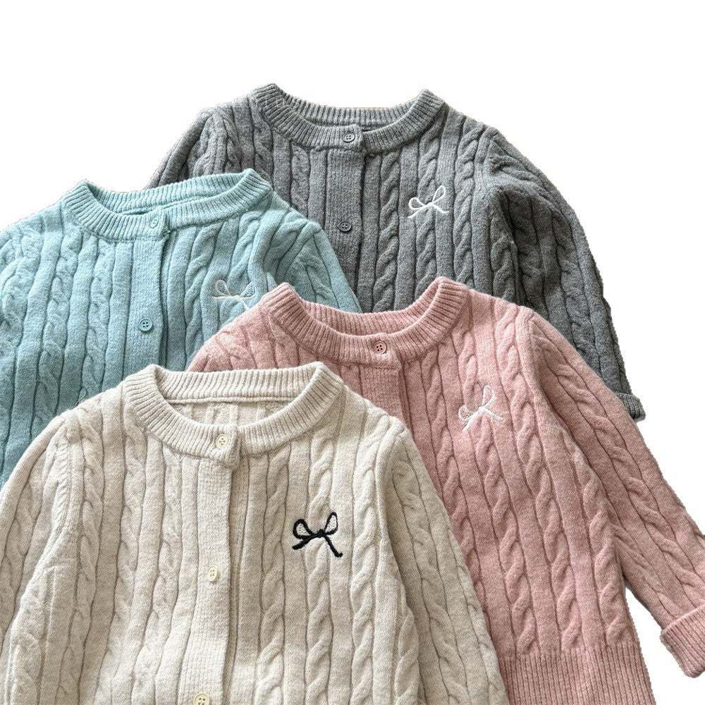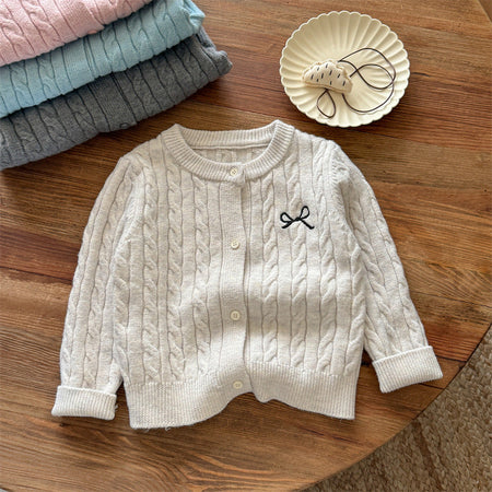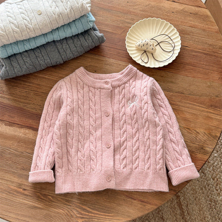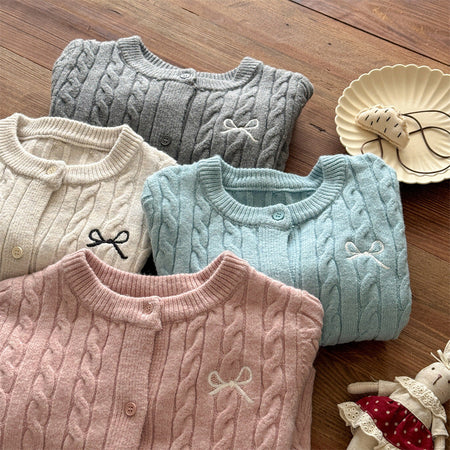 Made from soft, breathable knit fabric, it provides gentle warmth while remaining lightweight for all-day comfort. The classic cardigan design allows for easy layering over T-shirts or dresses, and the stylish cut adds a fashionable touch that’s perfect for young trendsetters 👗✨. Its modern, versatile design ensures it pairs beautifully with skirts, jeans, or leggings.