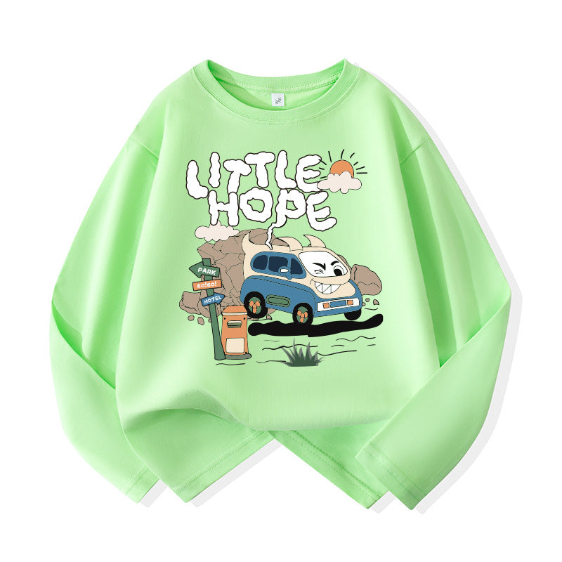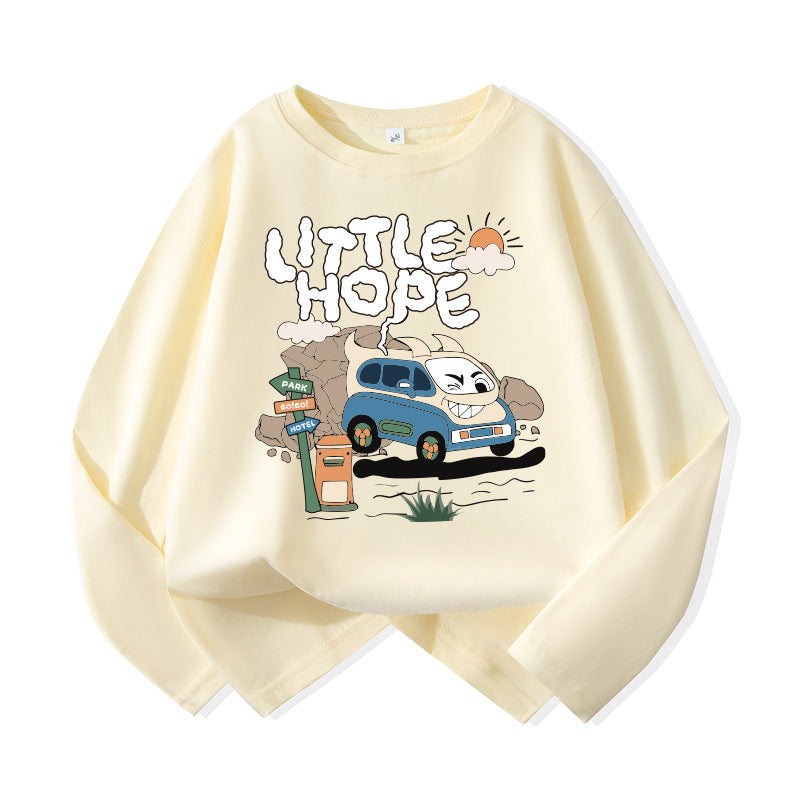 The pure cotton fabric supports a soft and breathable wearing experience, making this top ideal for daily use 👕. Designed as a children's spring and autumn base shirt, it offers light coverage while remaining comfortable for active wear. The long-sleeved design adds practicality for changing seasonal temperatures.