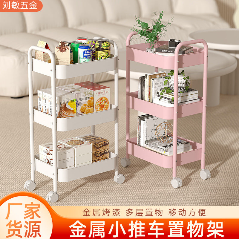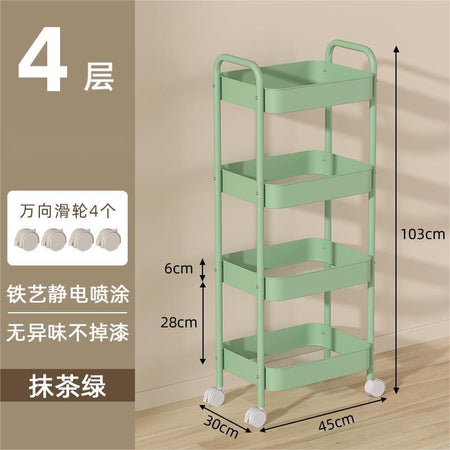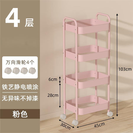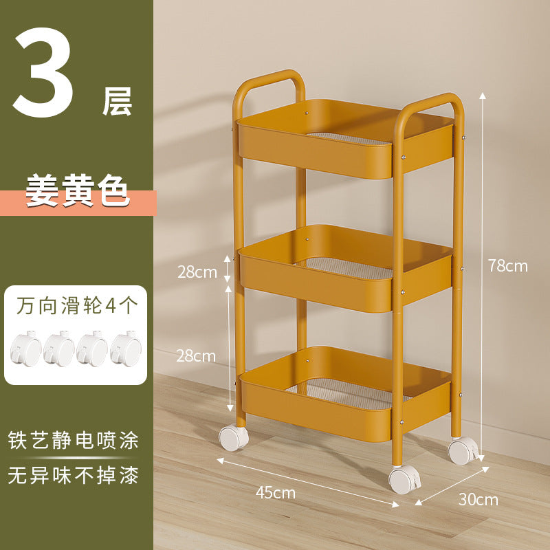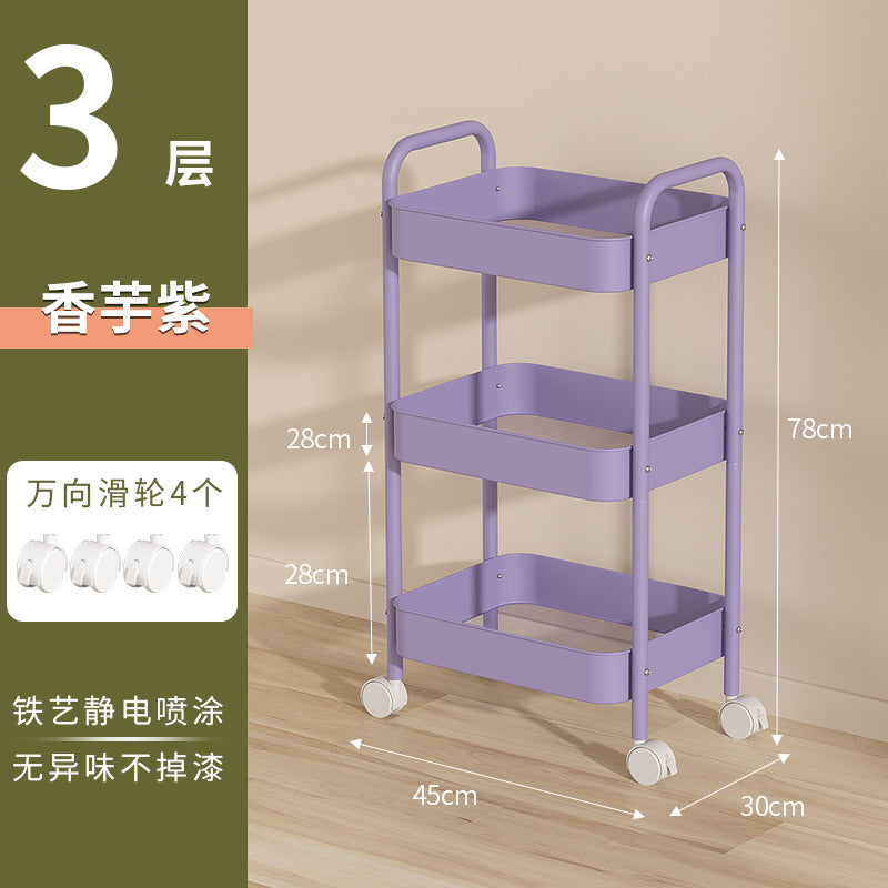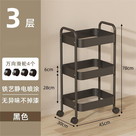Organize your space effortlessly with this multi-layer movable trolley rack! Designed with double armrests and durable wheels, it's perfect for snacks, books, cosmetics, or kitchen supplies.