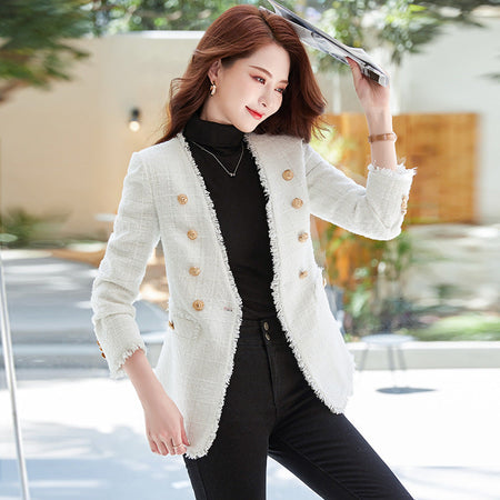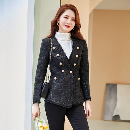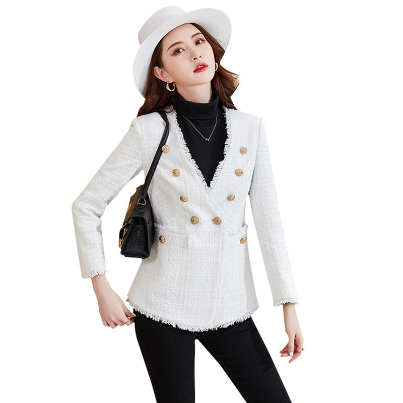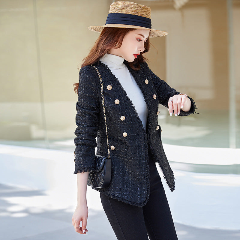 Elevate your wardrobe with our tweed raw-edge V-neck slim-fit jacket, perfect for women who love chic and elegant fashion 🌸✨. Inspired by Chanel-style small suit jackets, this piece blends timeless sophistication with modern comfort, making it ideal for office wear, social events, or stylish everyday outfits.