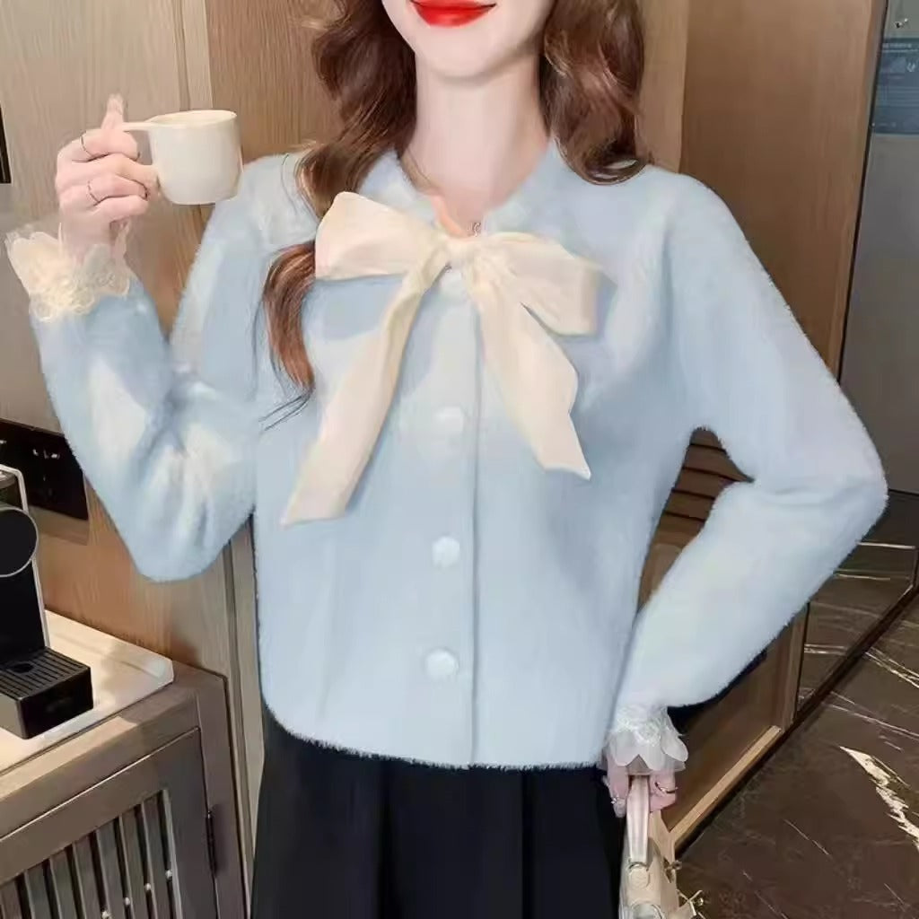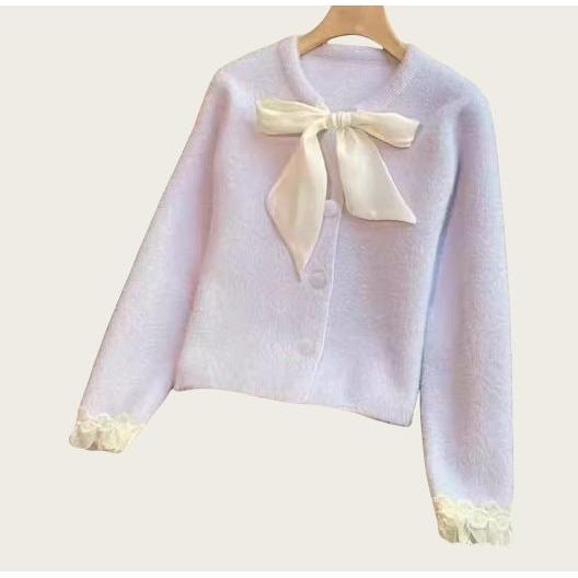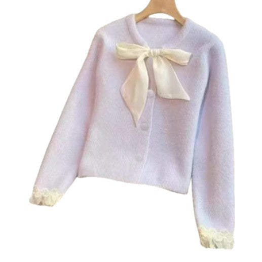 Tweed Bow Knit Cardigan
