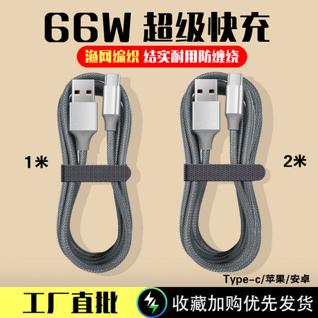 Charge with speed and style using this โก Two-Color Fishing Net Braided Fast Charging Cable, built for Apple ๐, Android ๐ค, and Huawei ๐ฑ mobile phones. Engineered to support up to 66W fast charging, this durable cable powers your devices quickly and efficiently, whether you're at home ๐ , in the office ๐ผ, or on the move ๐.