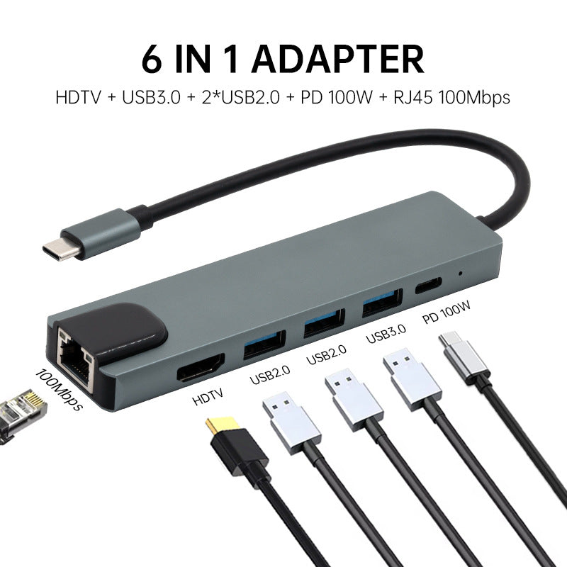 6‑in‑1 Type‑C Dock with Ethernet & PD