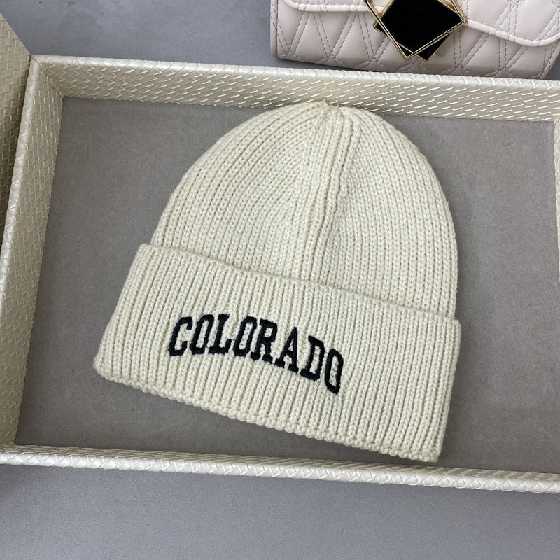 Unisex Korean White Wool Hat – Autumn/Winter Knitted Letter