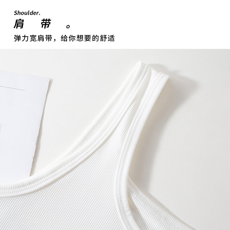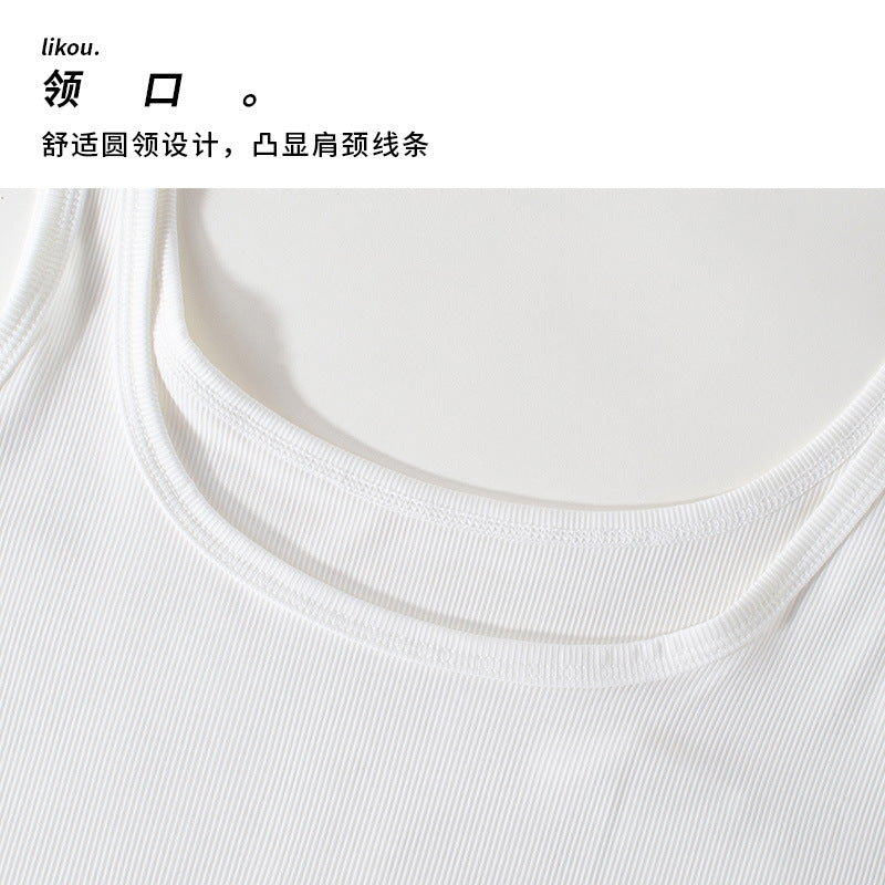 Its ribbed texture and wide straps offer support and stretch, making it perfect for layering or standalone wear. The body-hugging fit flatters all figures, while the sleeveless design keeps you cool from spring through summer.