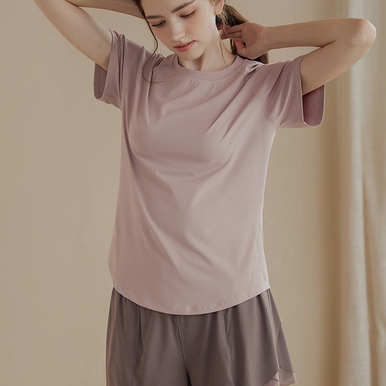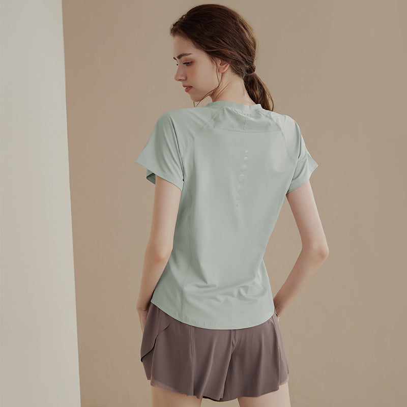 This 2025 new short-sleeved T-shirt features a slimming fit that contours your body while providing excellent breathability. Made from quick-drying, stretchable fabric, it keeps you comfortable and dry during running, training, yoga, or any fitness routine. 🏃♀️💪