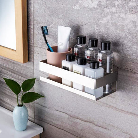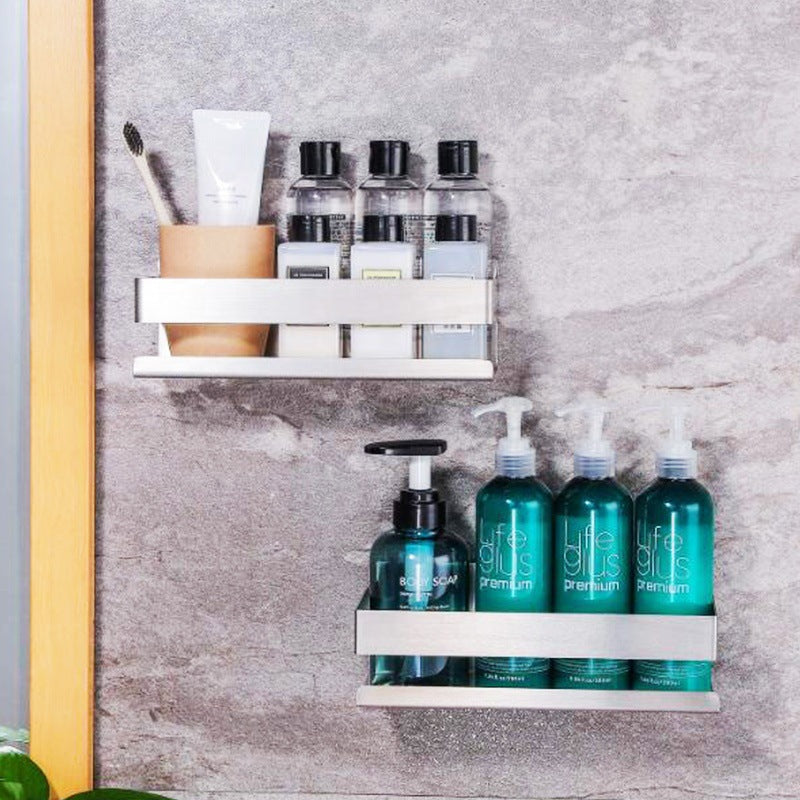 Upgrade your home with this Punch-Free Stainless Steel Wall Rack, ideal for both kitchen and bathroom use. Store spices, shampoo bottles, or cleaning tools on this sleek, rust-resistant shelf.
