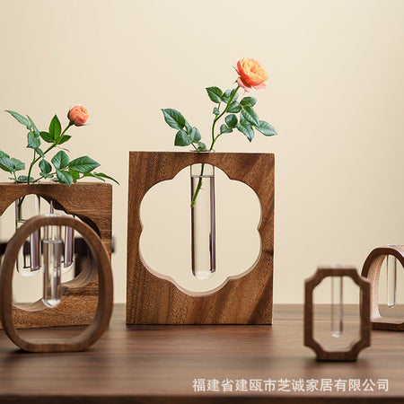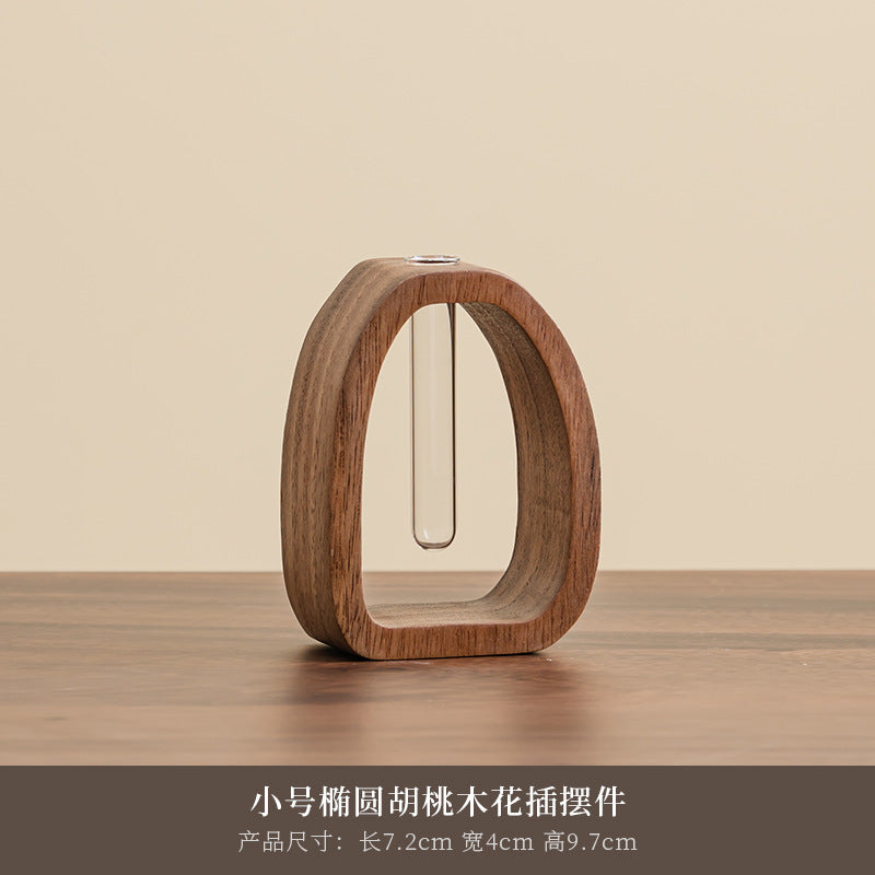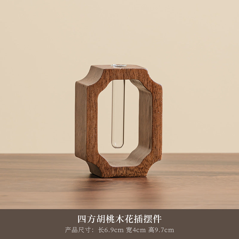 Bring nature indoors with the Walnut Solid Wood Hydroponic Vase, a stylish desktop ornament designed for hydroponic plants, fresh flowers, or creative arrangements. 🌿✨ Combining warm walnut wood with a clear mini glass vase, this piece makes a charming addition to your home, office, or living room décor.