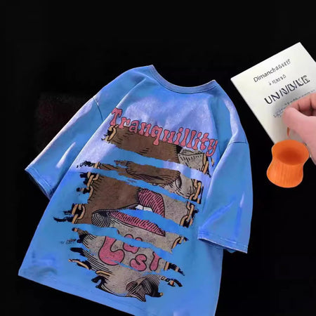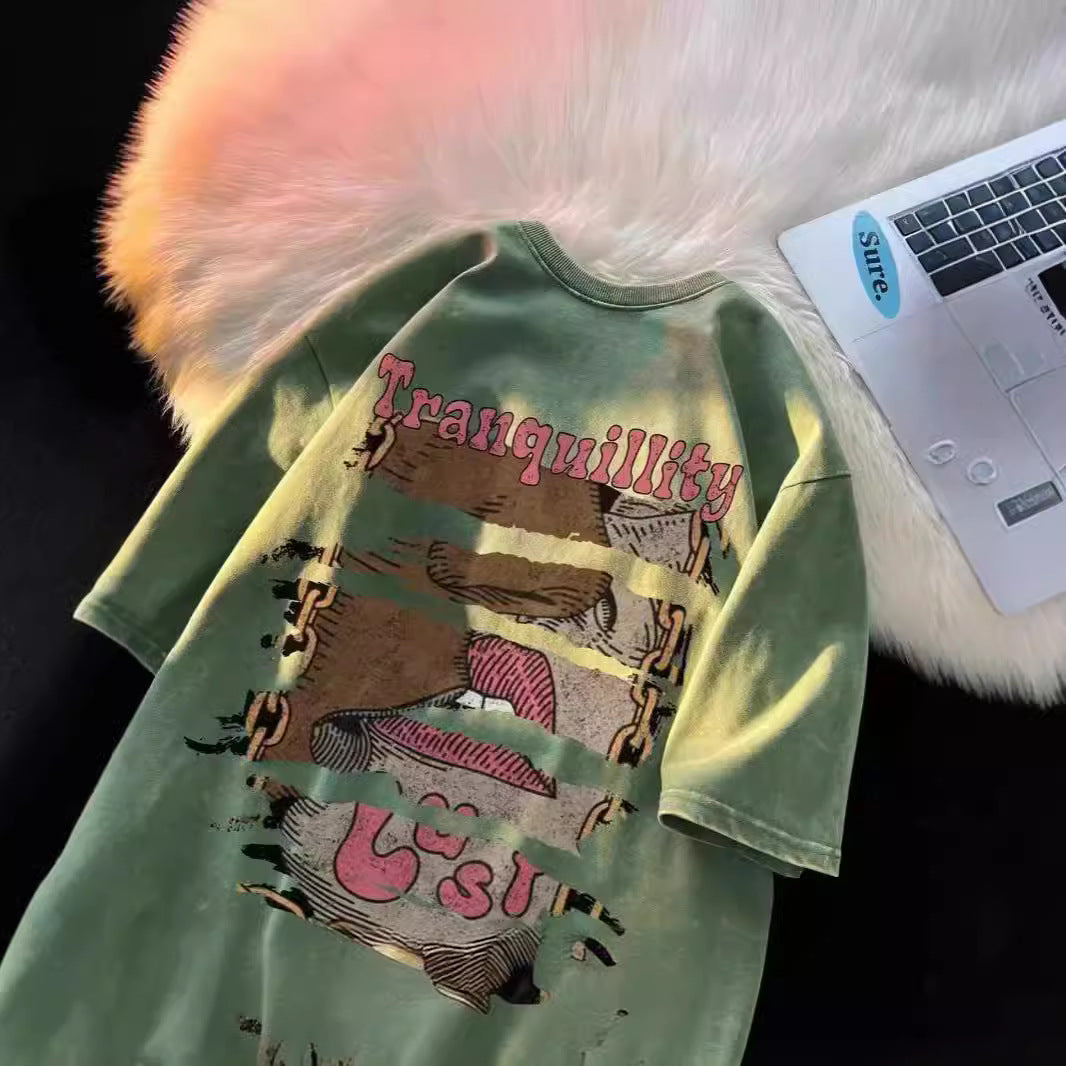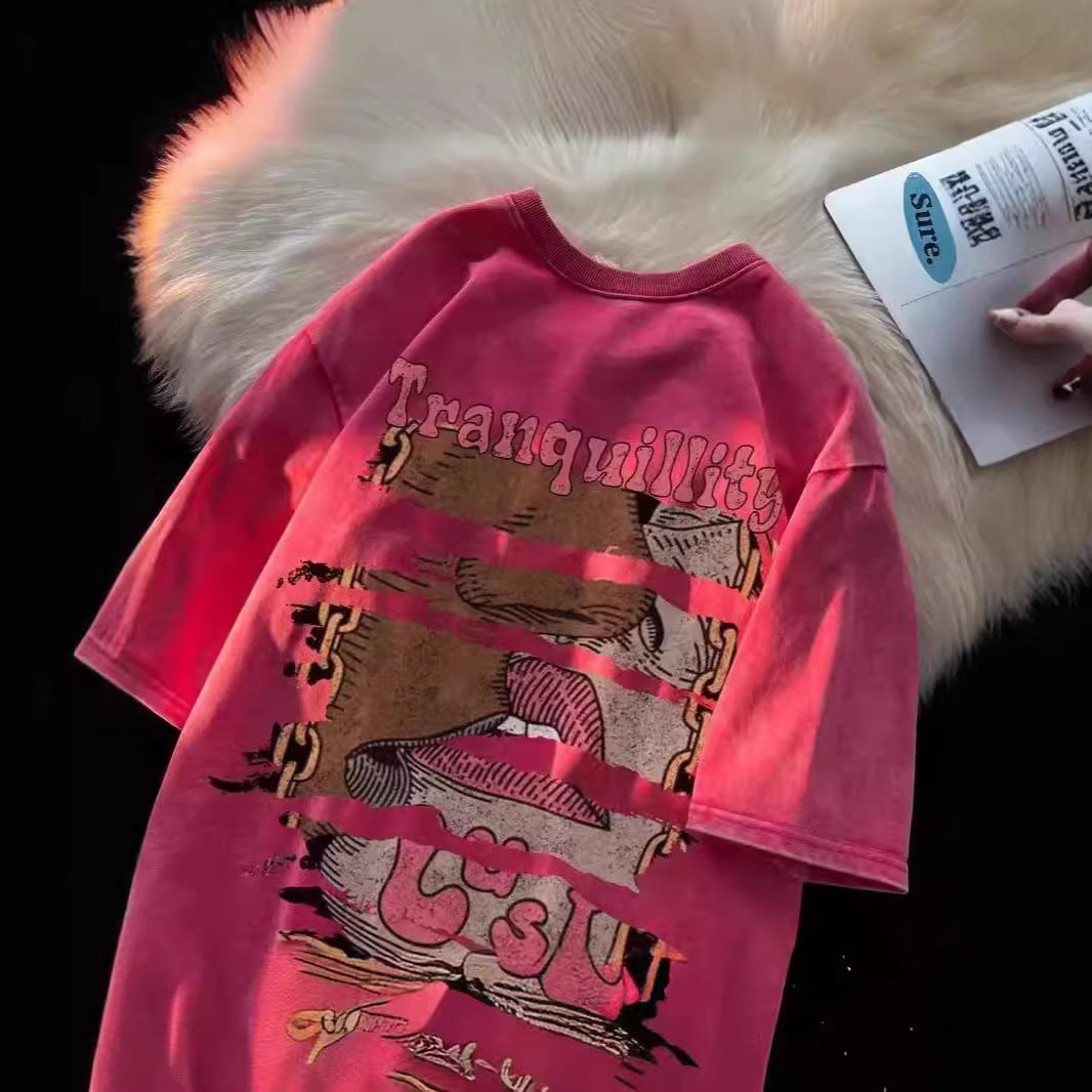 Step into the world of high street fashion with the Washed Old Printed T-Shirt. Featuring a vintage-inspired design, this shirt embodies the perfect mix of comfort and European-American street style. Its washed fabric provides that cool, retro vibe, making it the perfect addition to your summer wardrobe.