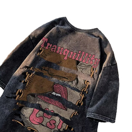 🌞 Bring Retro Charm with the Washed Old Printed T-Shirt! 🌞
