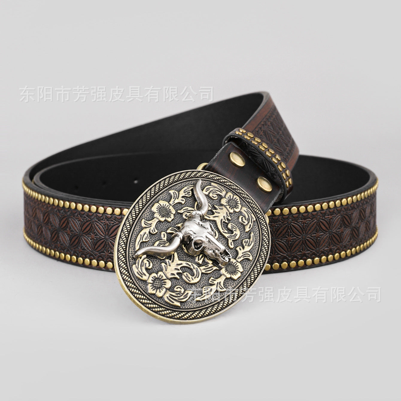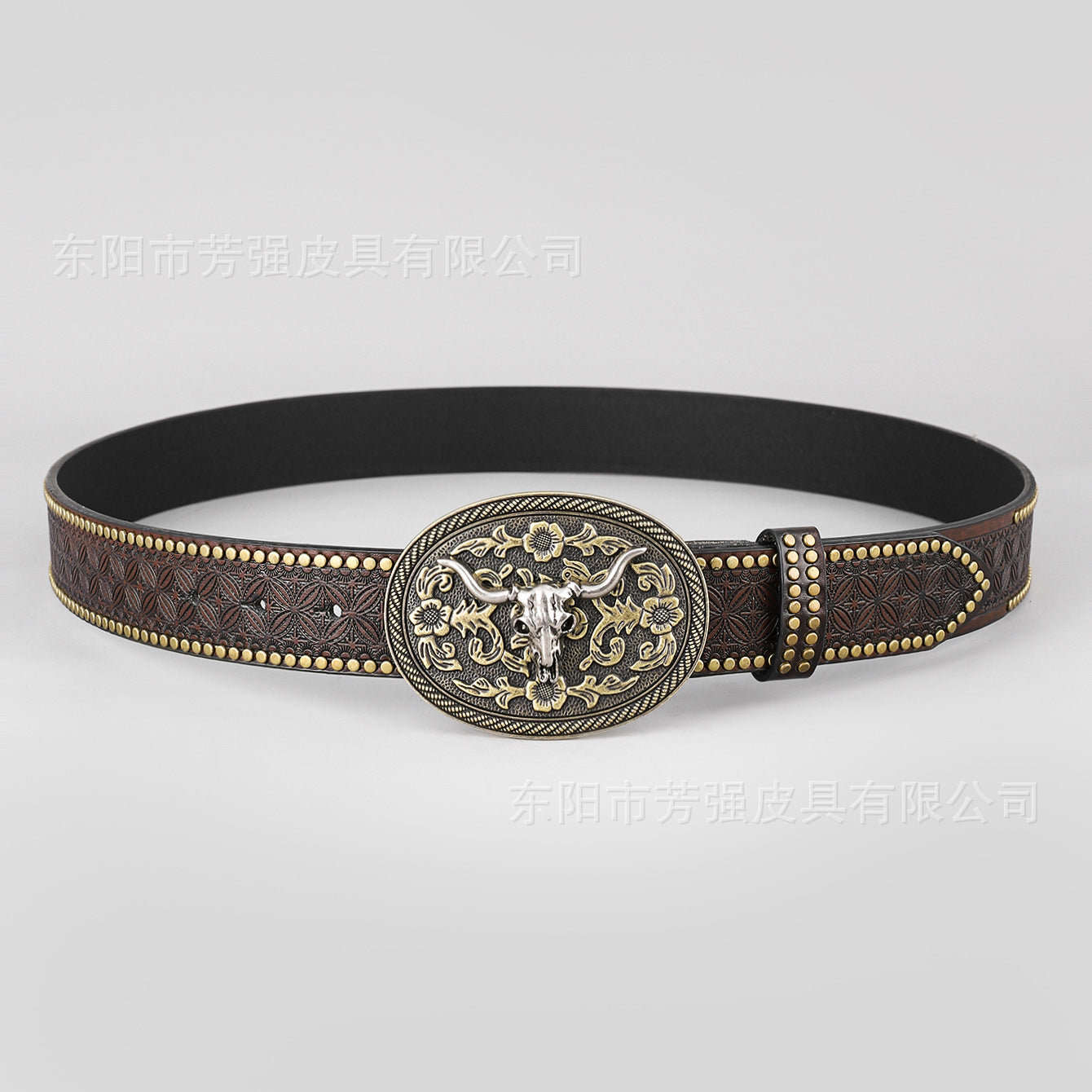 Western Mongolian Denim Belt – Rivet Detail Men’s