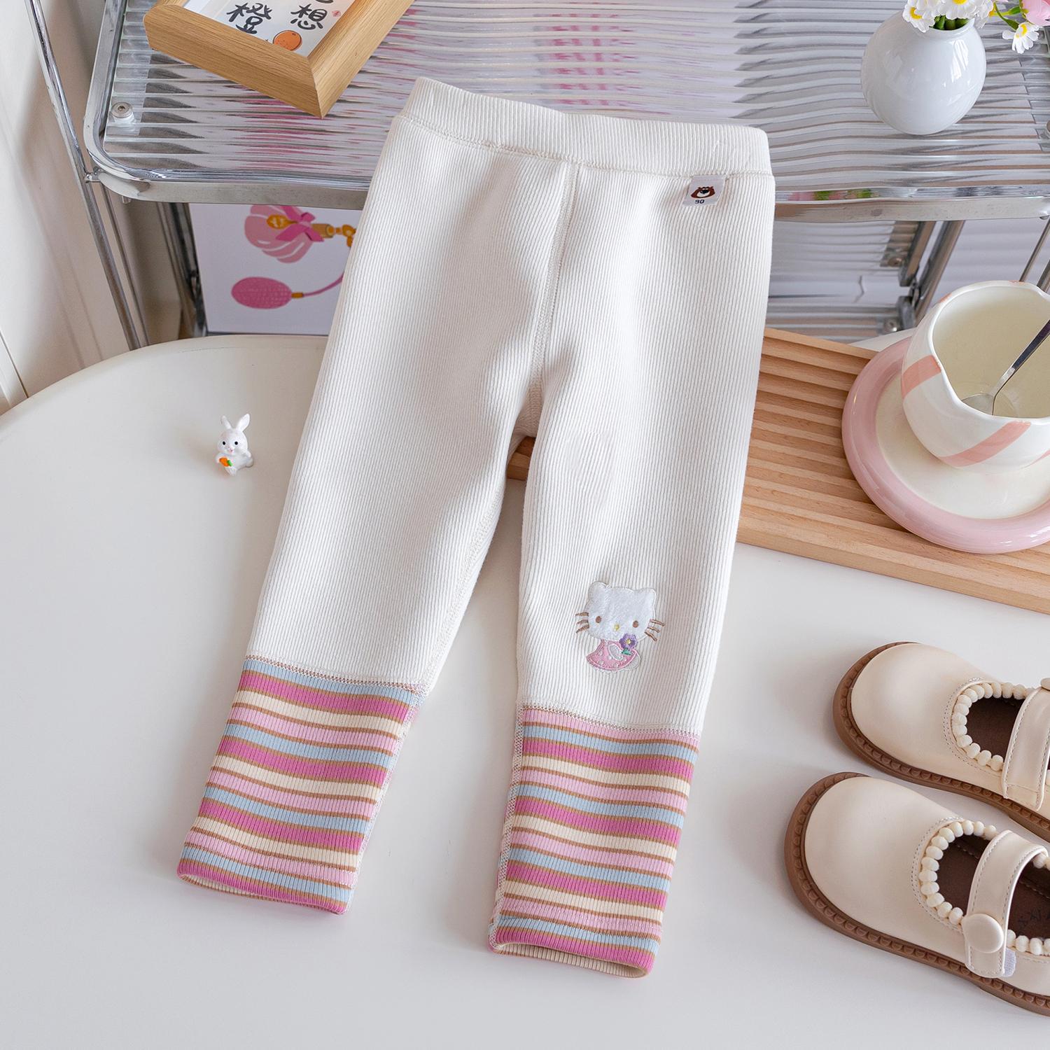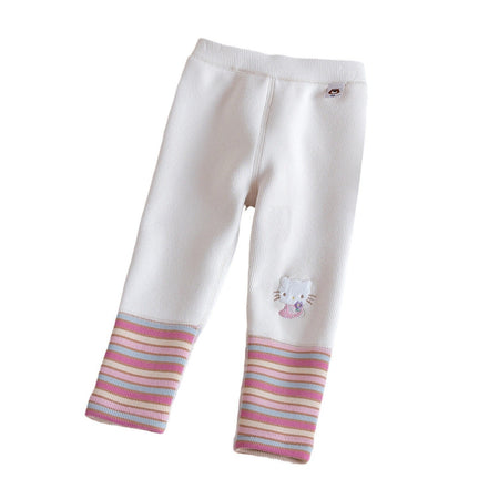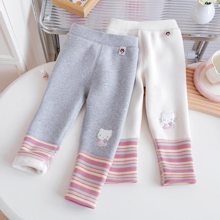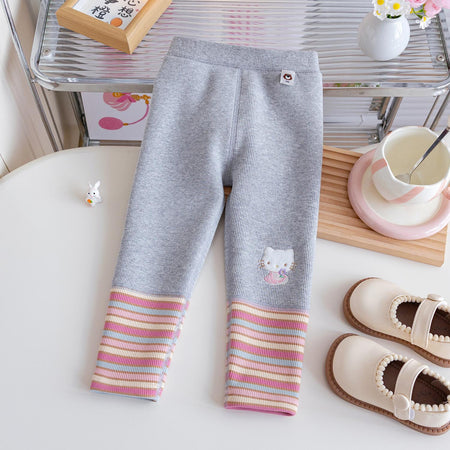Girls’ Velvet Striped Leggings – Autumn & Winter Warm Pants