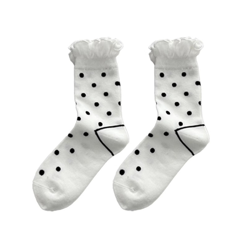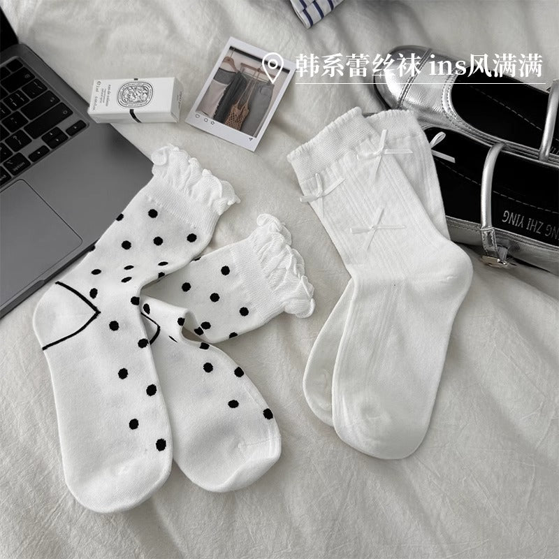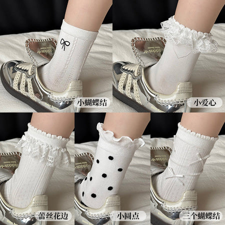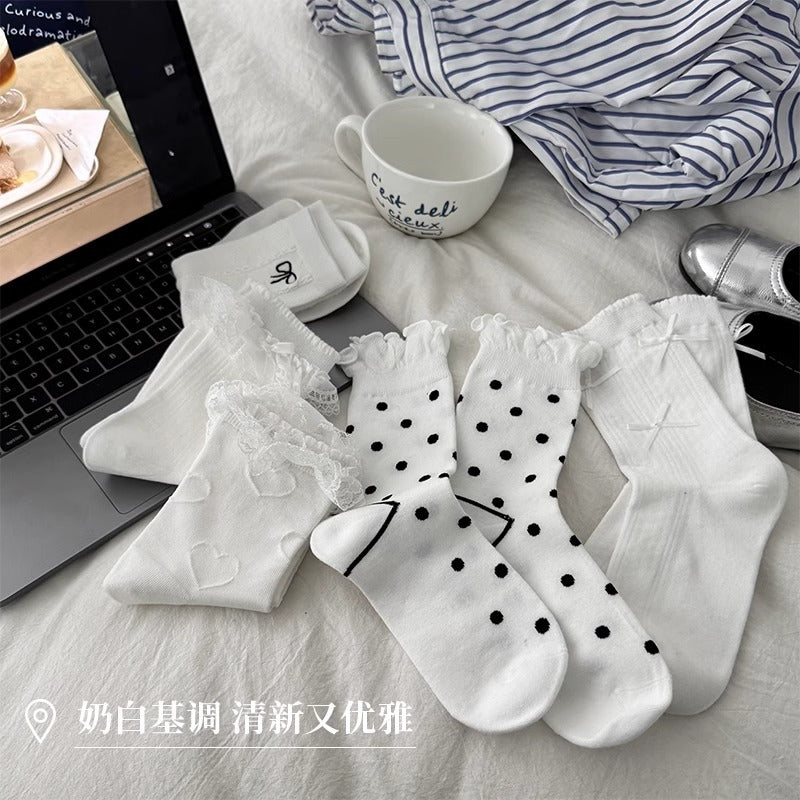 (Pack of 5)-White Bow Lace Socks โ Lolita-Inspired Cotton Mid