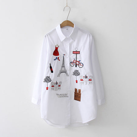 Step into cozy Korean fashion with this 🍂 Autumn White Printed Shirt for Women, designed in a loose, mid-length silhouette that’s both stylish and comfy.