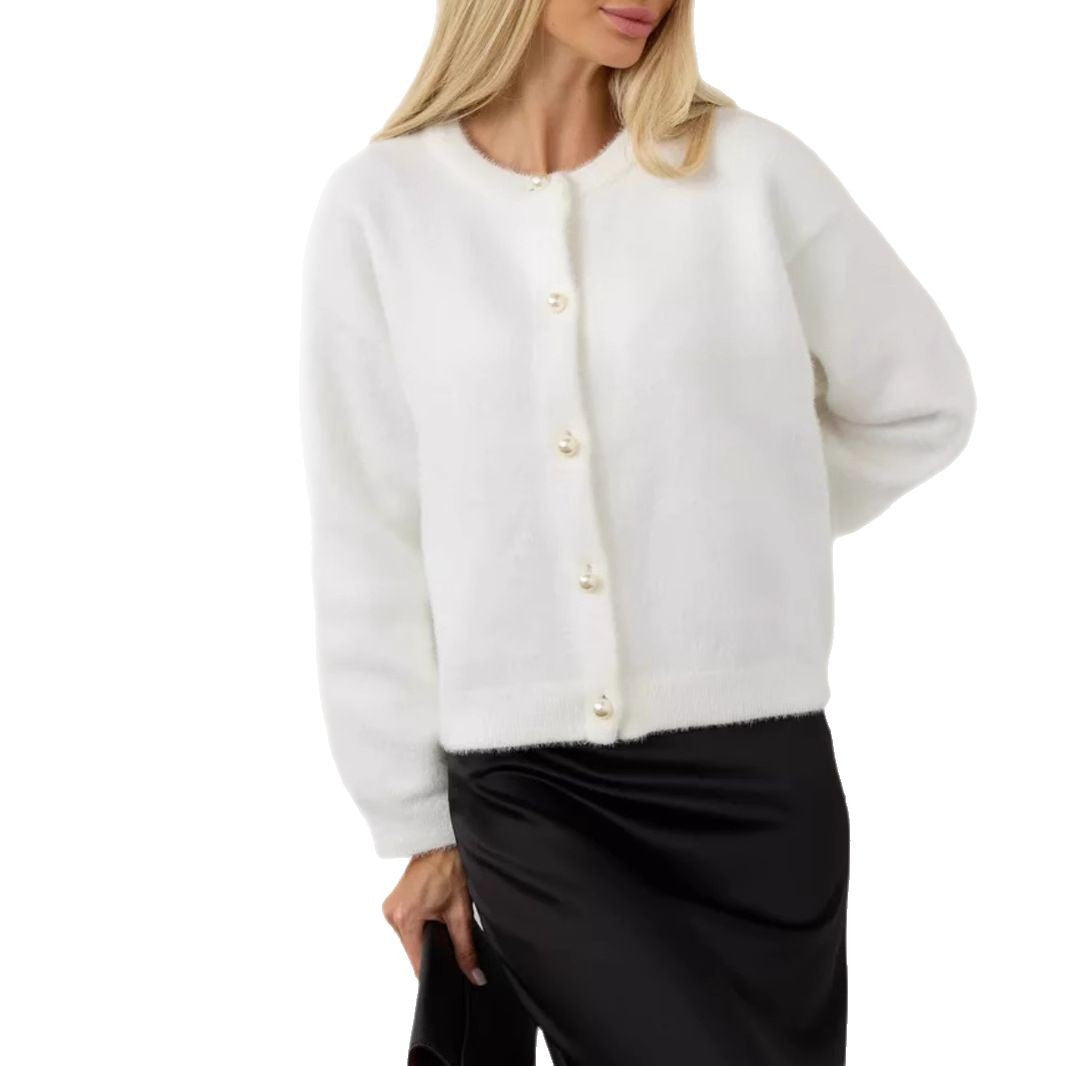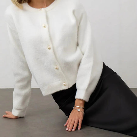 Women’s White Mink Velvet Short Knit Cardigan