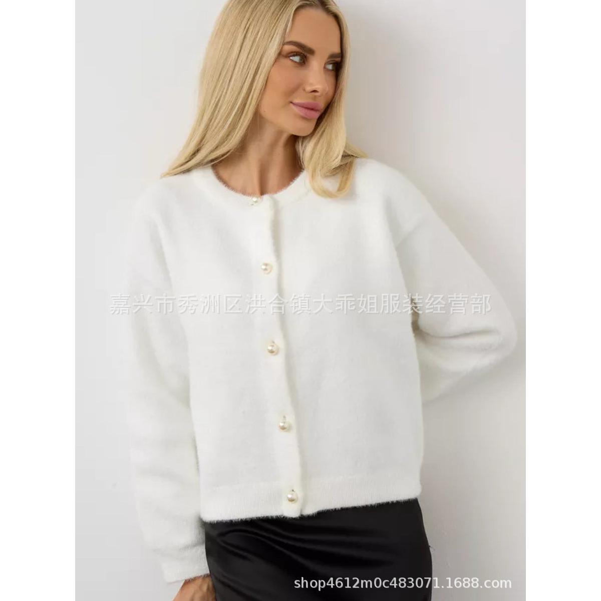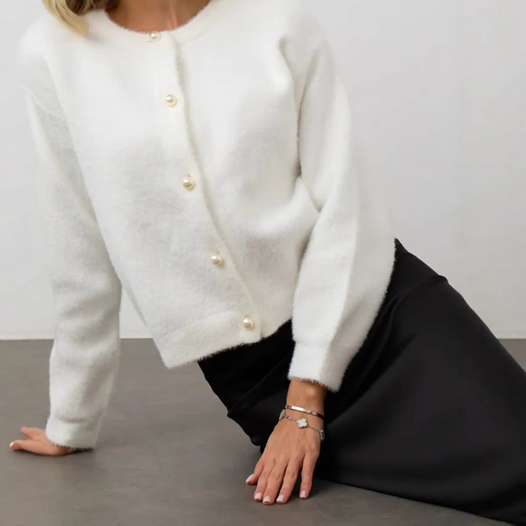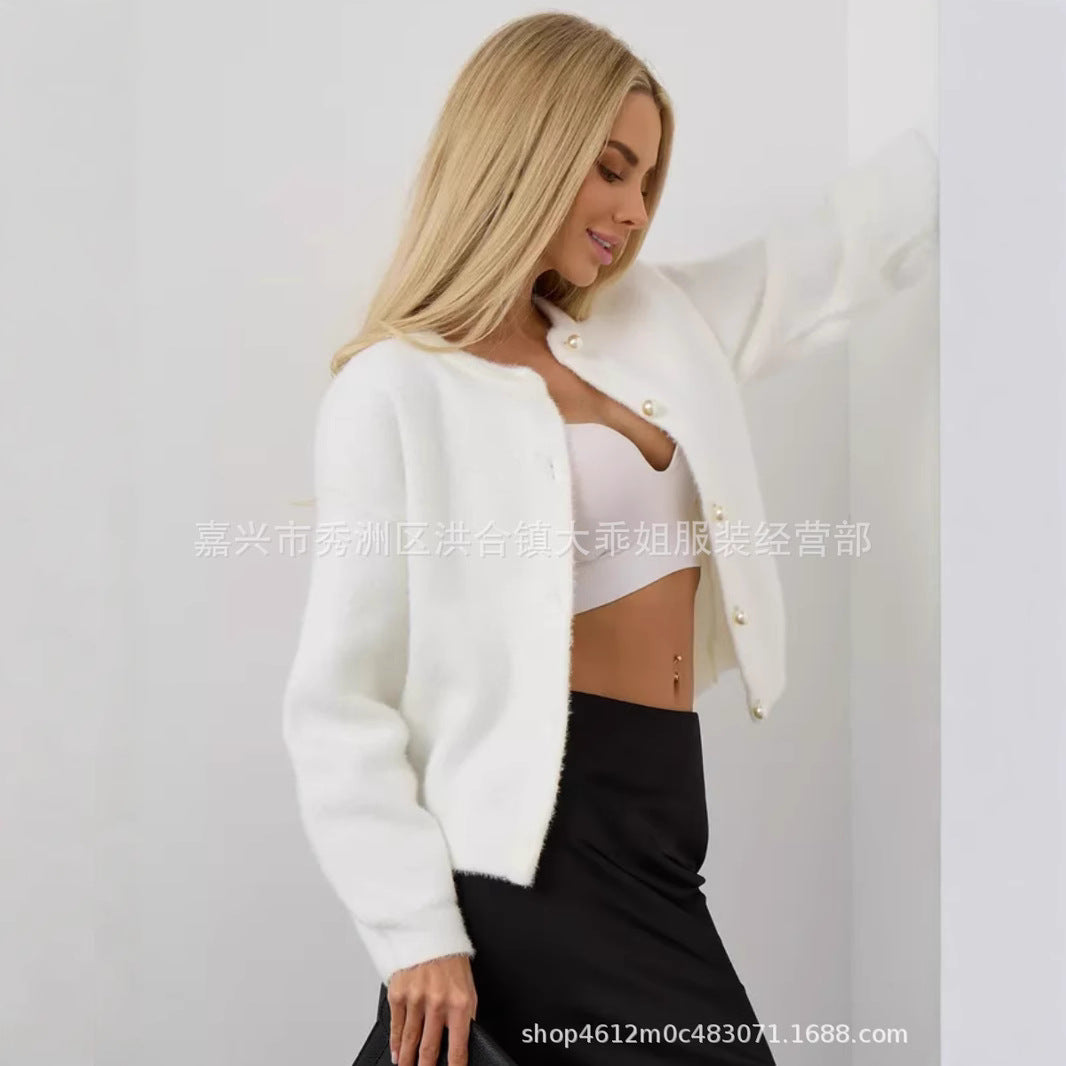 🤍 Gentle and elegant, this short soft waxy mink velvet cardigan adds a touch of warmth and sophistication to your autumn/winter style. Designed with a loose lazy fit, it’s both cozy and stylish.