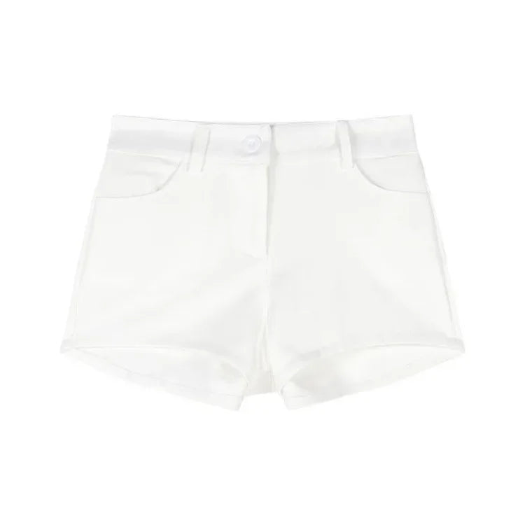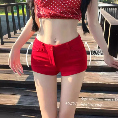 Turn up the heat this summer with these white low waist super shorts, designed for confident, style-savvy women! With a slim-fit, straight-cut silhouette and a flirty A-line shape, these Spice Girl-inspired hot pants hug your curves while keeping your look cool and casual. 🌞💃