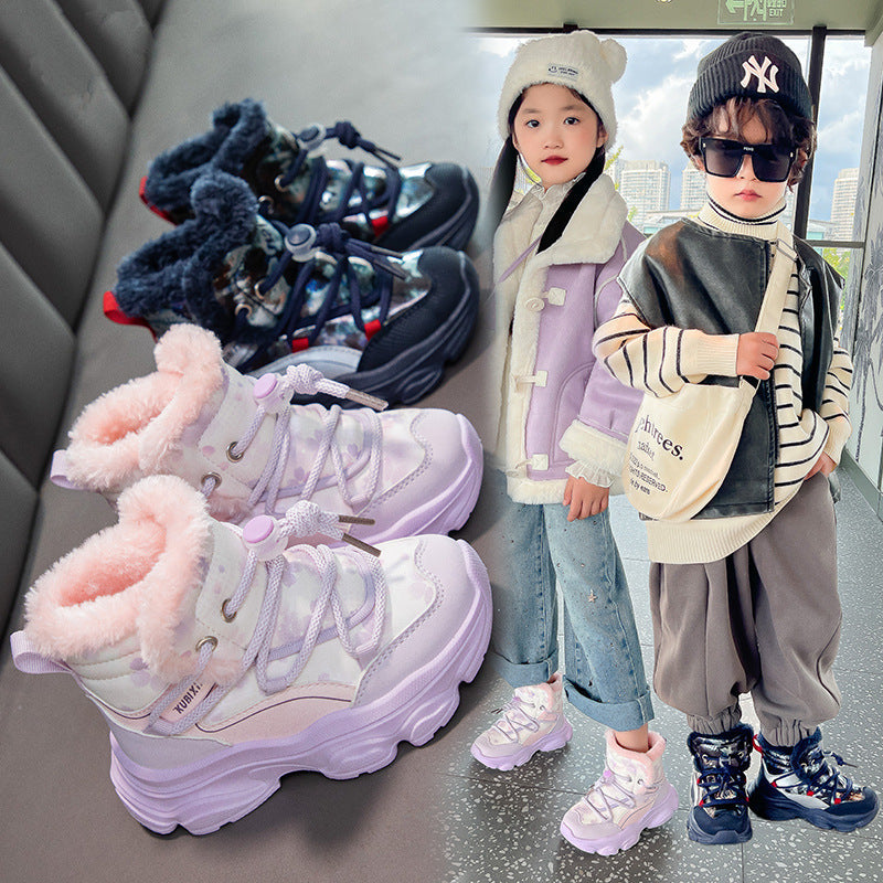 Girls’ Plush Snow Boots – Thick Winter Warm Footwear