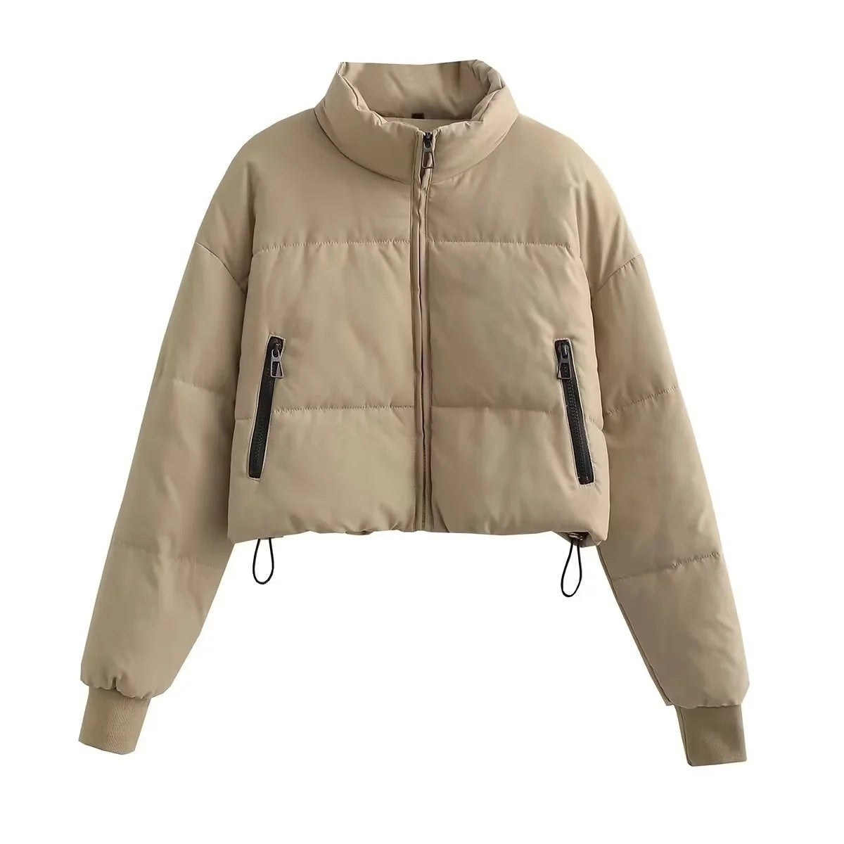 🧥 Stay warm and stylish with our khaki cotton jacket featuring a chic stand-up collar and adjustable drawstring hem. Designed for women who love European and American-inspired winter fashion, this jacket perfectly balances practicality and elegance. The long sleeves and cozy cotton padding provide warmth, while the drawstring hem allows you to customize your fit—tight for extra insulation or loose for a relaxed look.