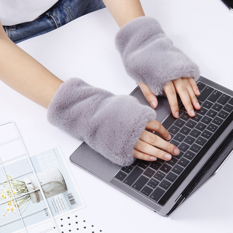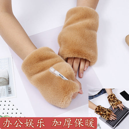 Women’s Plush Leopard Print Half Finger Fur Gloves
