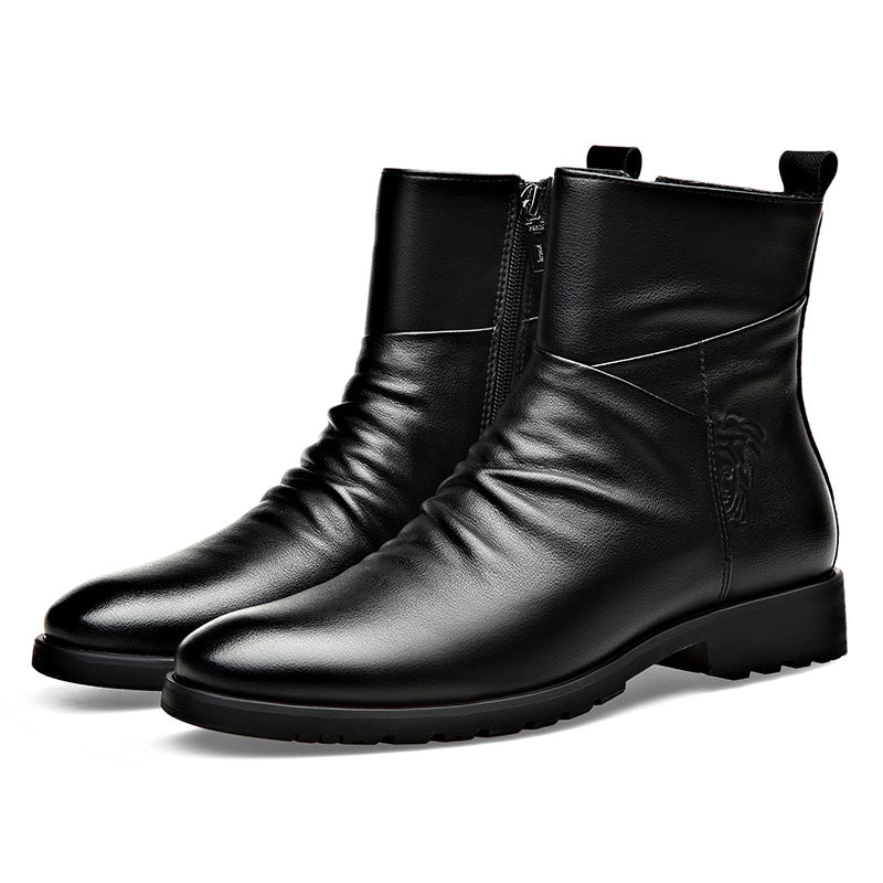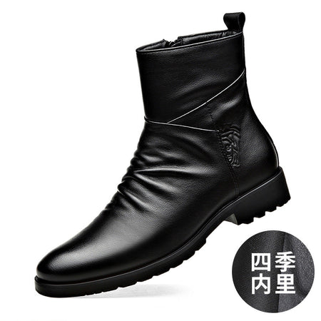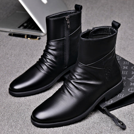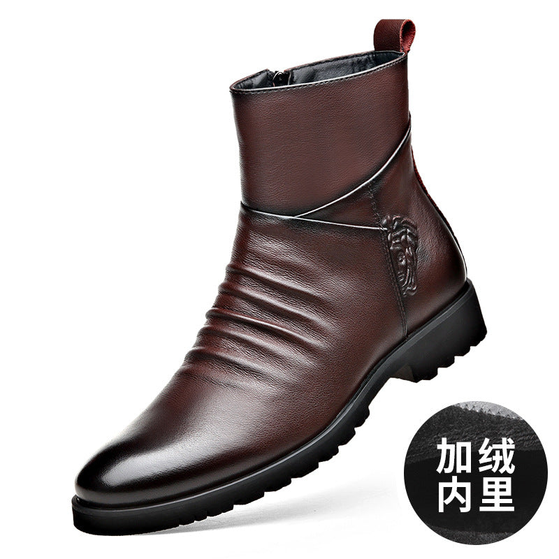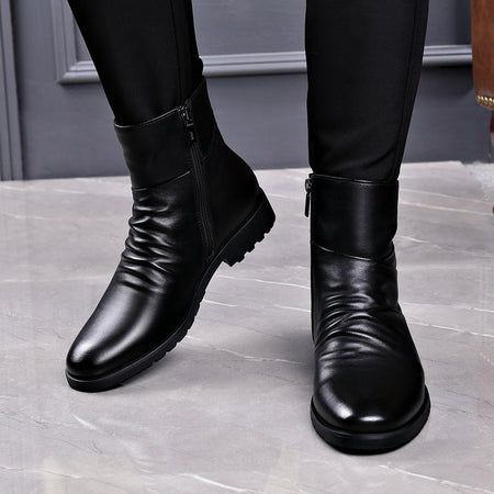 Winter Mid High-Top Cowhide Boots โ Fleece-Lined Comfort
