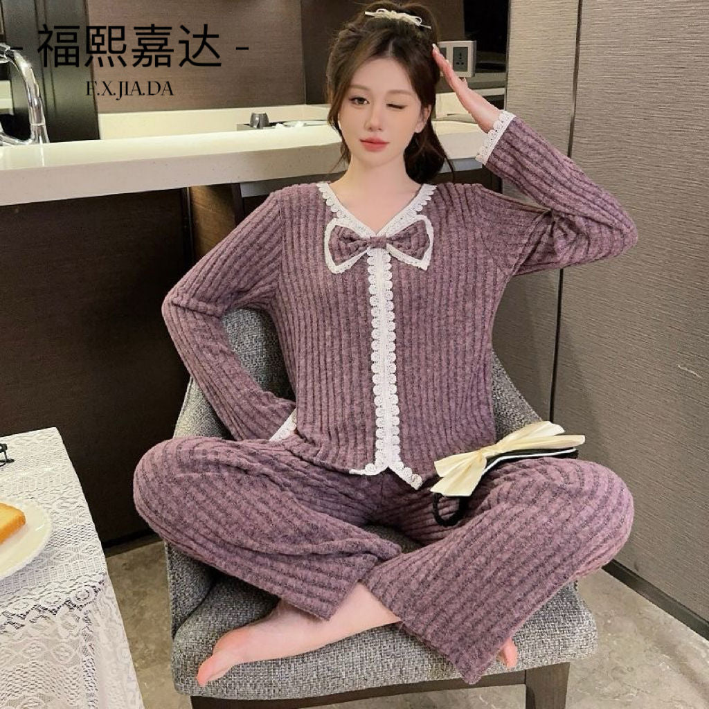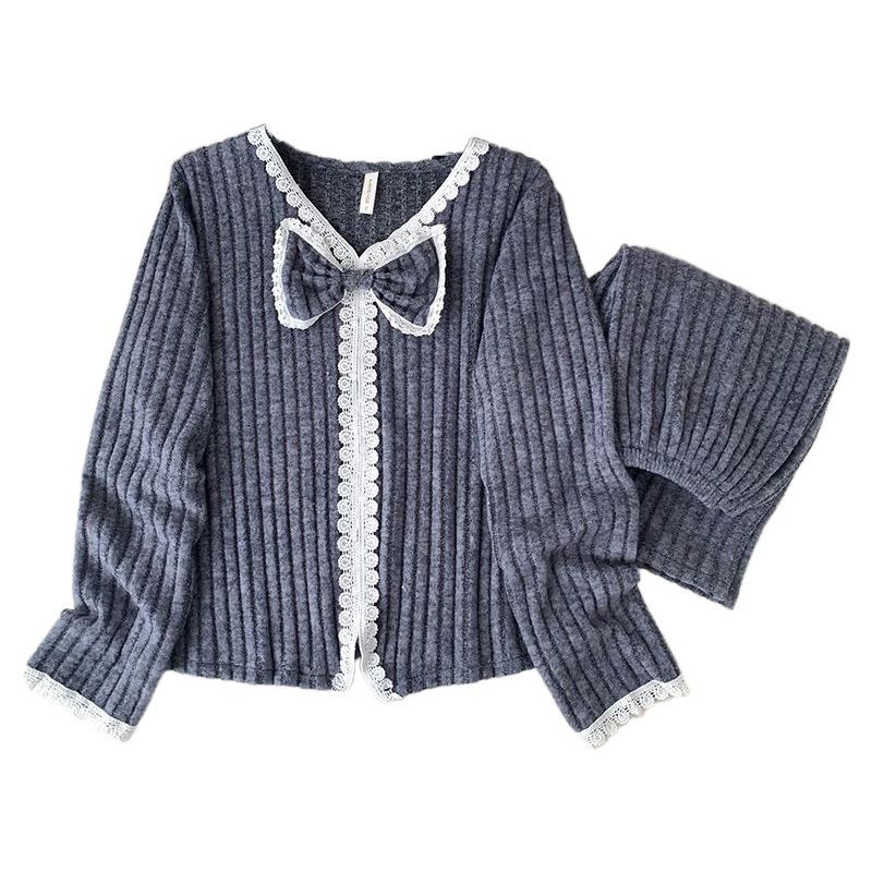 Stay warm and stylish this winter with our New Arrival Womenβs Pajama Set featuring a striped design with lace and bow details! πβοΈ This adorable two-piece set combines cozy comfort with a touch of Korean-style cuteness, making it perfect for both relaxing at home or stepping out in casual loungewear chic. π