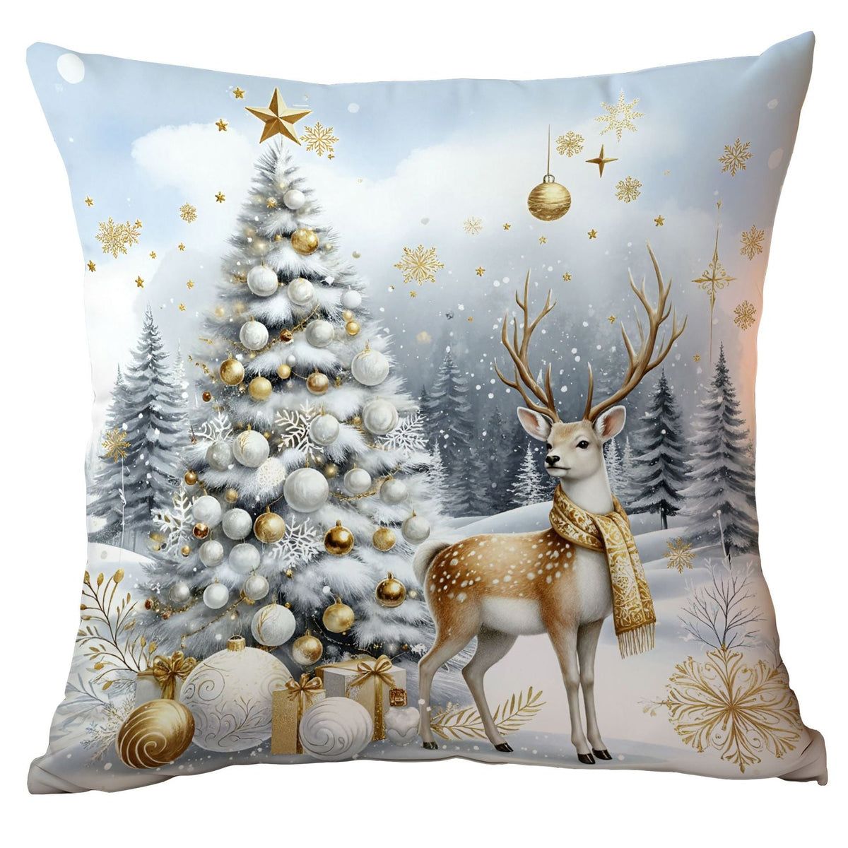 Winter Santa Snowman Elk Pillow Cover – Festive Cushion