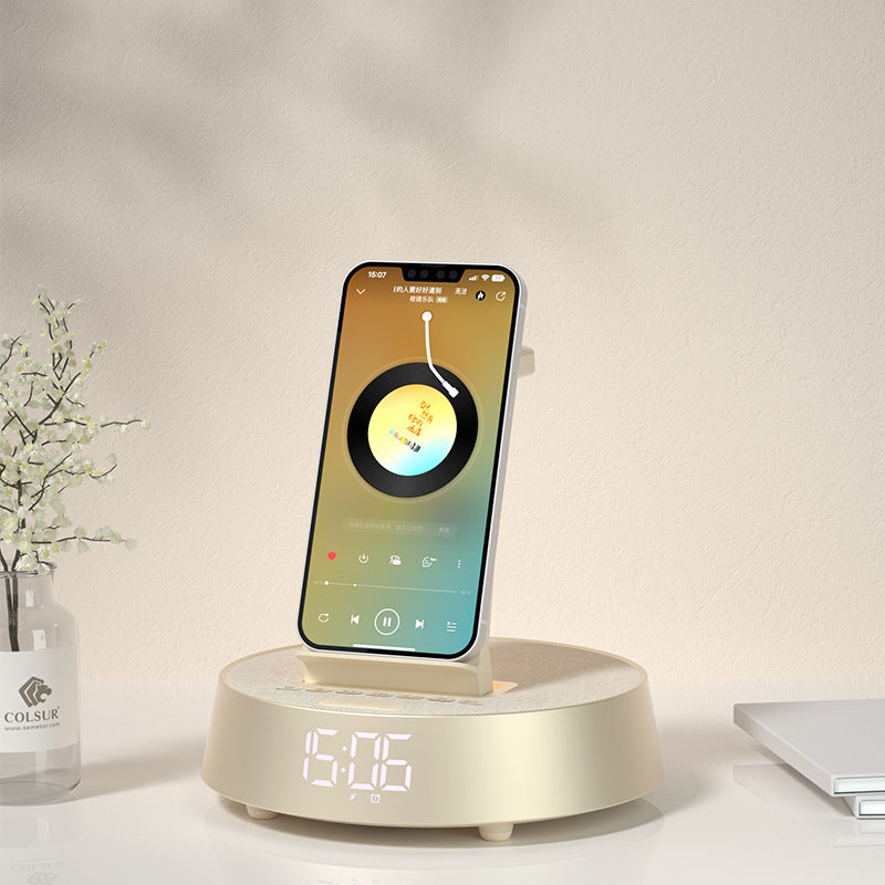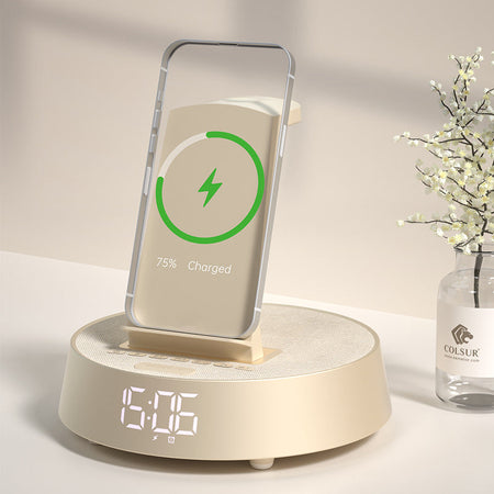 Wireless Charging Bluetooth Speaker | Alarm & Light