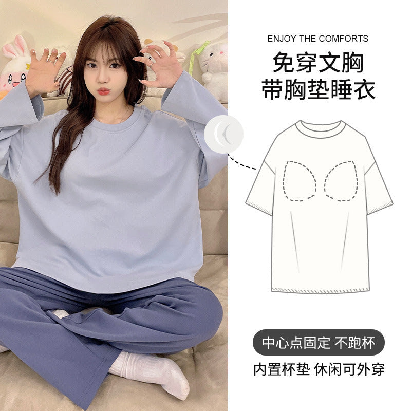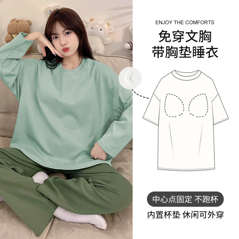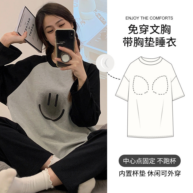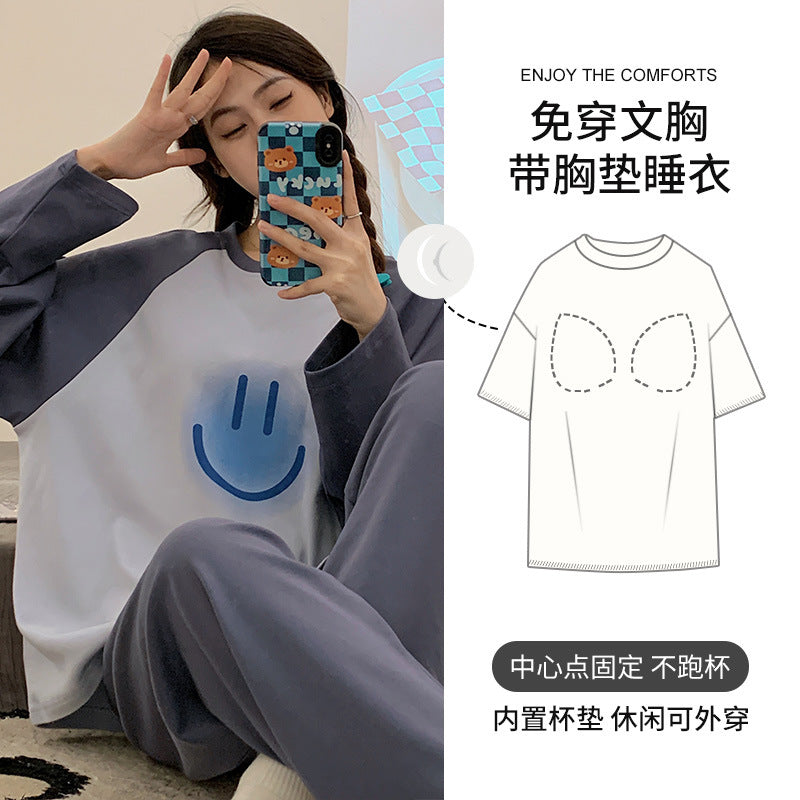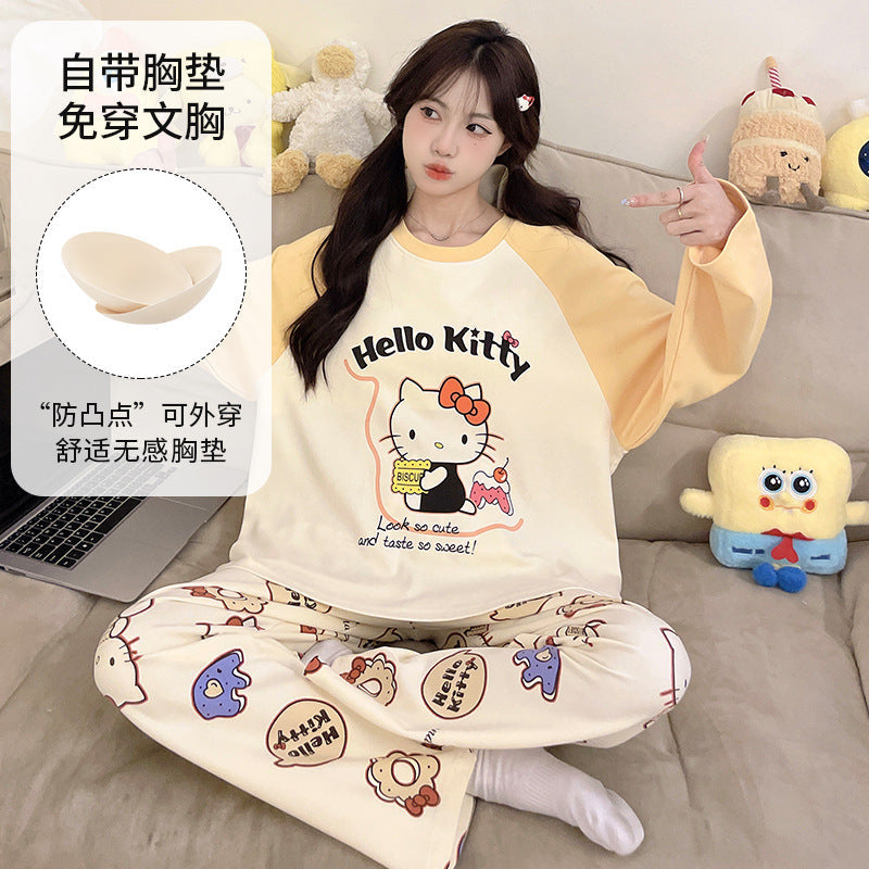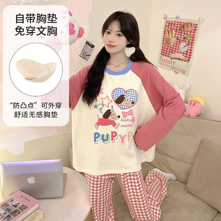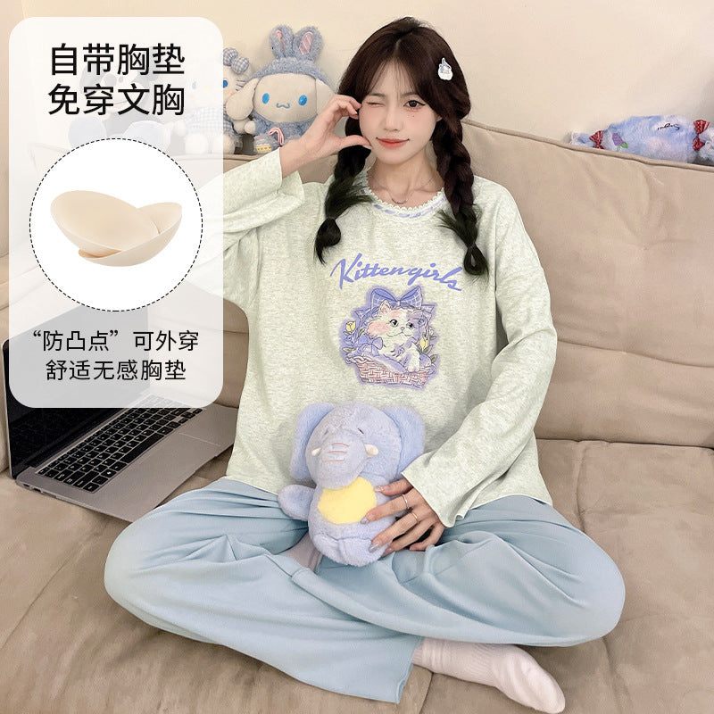 Get cozy and cute with our Cartoon-Printed Pajama Set for Women, complete with a built-in chest pad for added comfort and support – no need for a bra! 💗 This long-sleeved and full-length trousers set is made from soft, breathable fabric that’s perfect for lounging, sleeping, or even stepping out in casual style. The anti-bump chest pad ensures smooth coverage, while the sweet cartoon design and trendy INS-style look make this a must-have for fashion-forward comfort lovers. 🐰