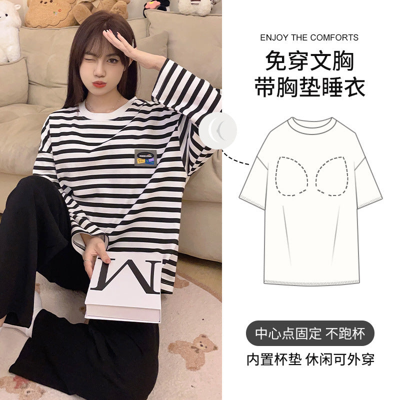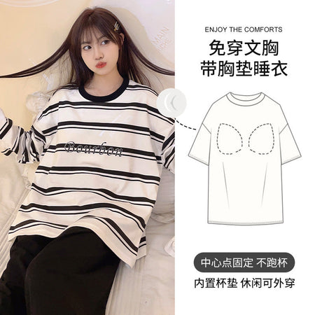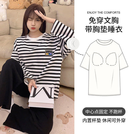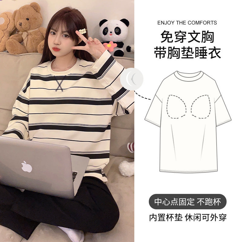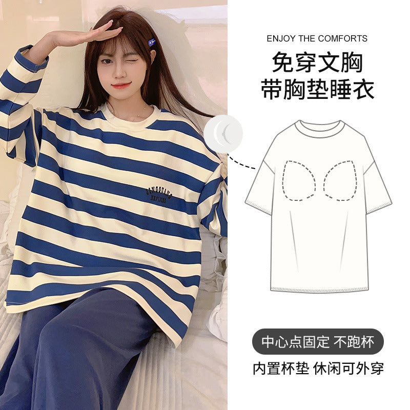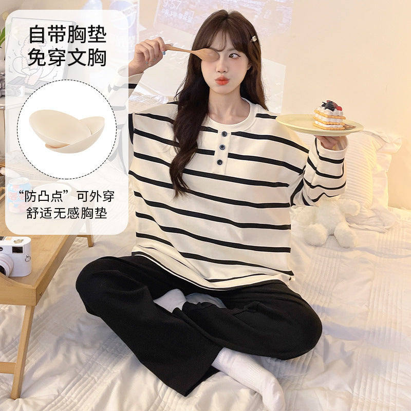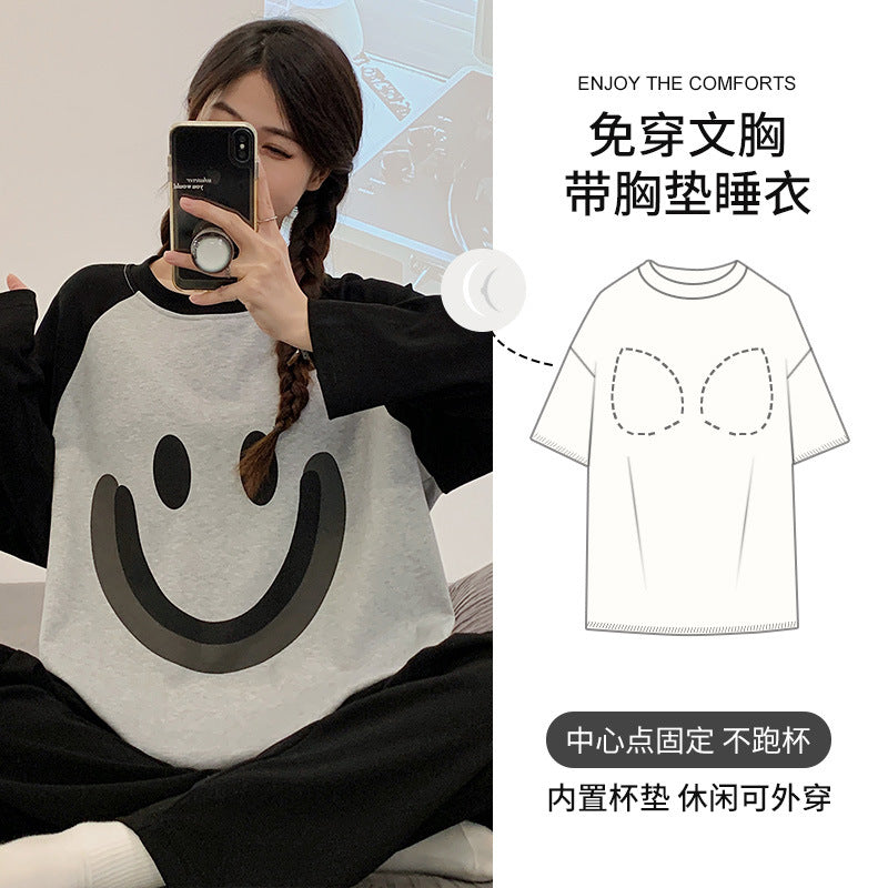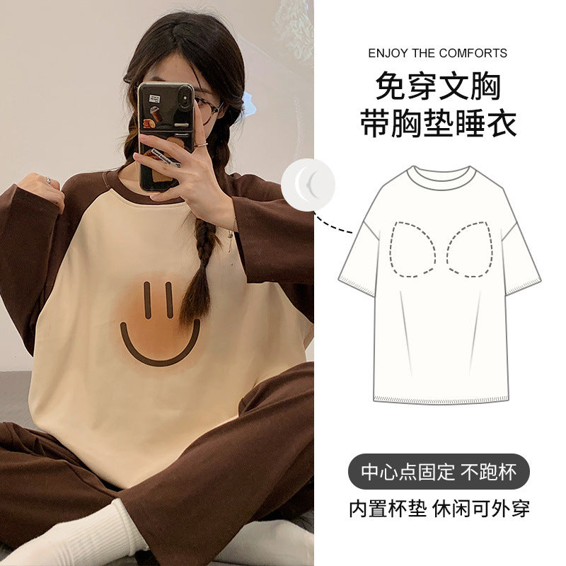 Get cozy and cute with our Cartoon-Printed Pajama Set for Women, complete with a built-in chest pad for added comfort and support – no need for a bra! 💗 This long-sleeved and full-length trousers set is made from soft, breathable fabric that’s perfect for lounging, sleeping, or even stepping out in casual style. The anti-bump chest pad ensures smooth coverage, while the sweet cartoon design and trendy INS-style look make this a must-have for fashion-forward comfort lovers. 🐰